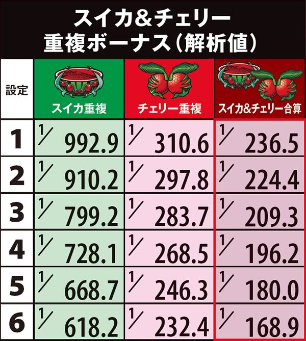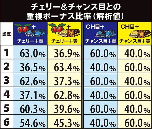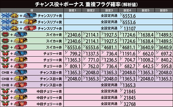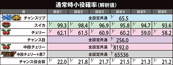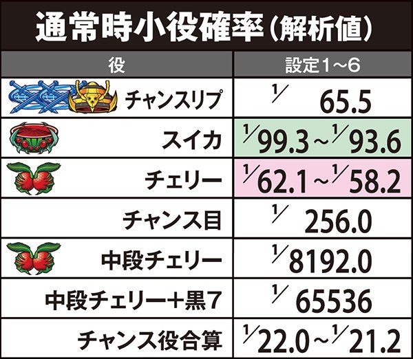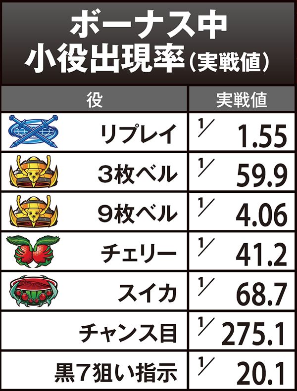 ※ボーナス中とART中も小役確率は同じだが黒7揃いとチャンスリプは基本的に成立しない