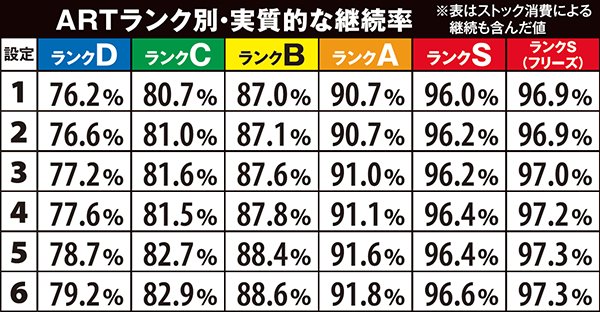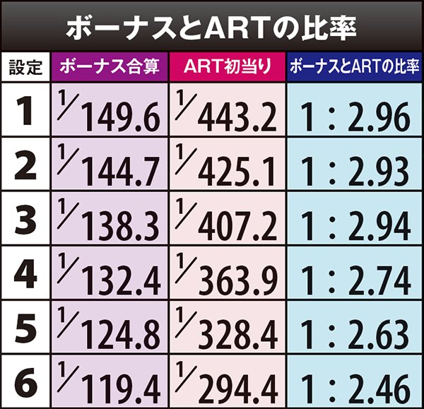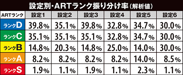 ART突入率は滞在状態に大きく左右され、通常状態で引いたボーナス中のみ設定差あり。通常状態の可能性が高い昼ステージに注目だ。