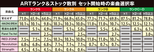 セット開始時の楽曲選択率・ARTランク&ストック数別
