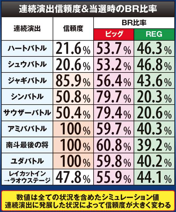 ノーマルモード・連続演出信頼度&当選時のBR比率