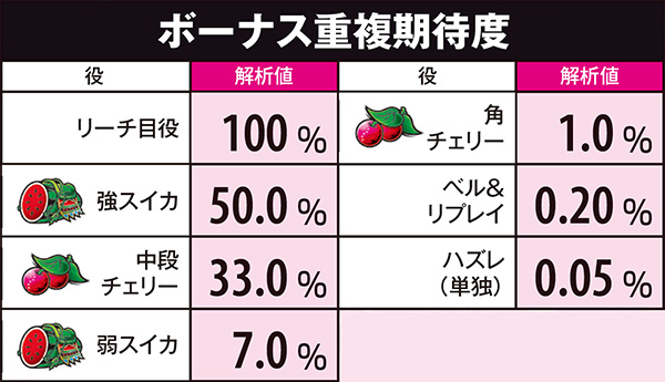 演出発生=小役成立なので、演出なしでの小役揃いはほぼ確定。チャンス役で作動する「ひでぶメーター」はボーナス期待度を示しており、実戦上、ゾロ目はビッグ期待度示唆にもなっているようだ。