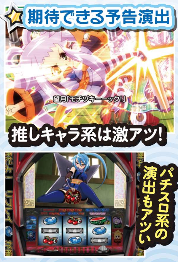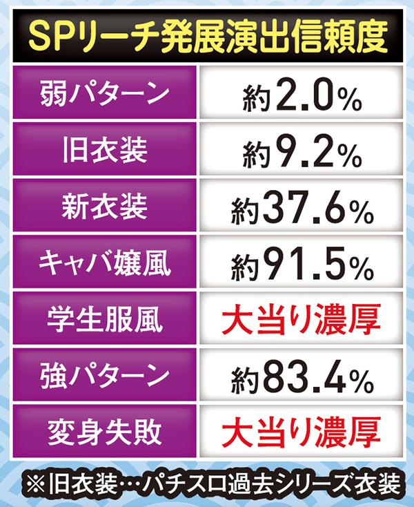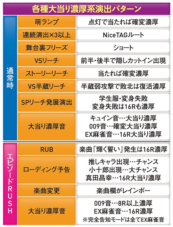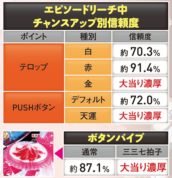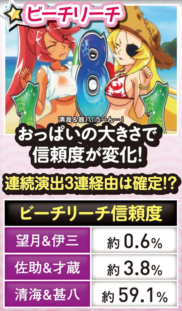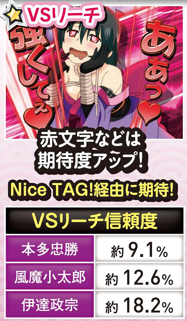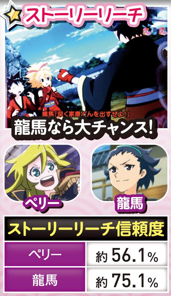 特定のキャラの組み合わせでエピソードリーチへ発展する。信頼度も高く、当たれば16Rの為、発生すれば興奮必至だ!