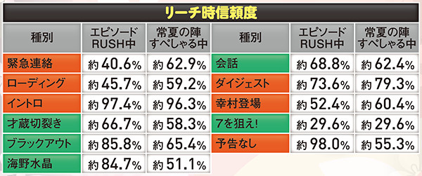 エピソードRUSH中はエピソードリーチ以外でも期待度が高い。いったんハズれた後にスイカ割りリーチに発展することもある。