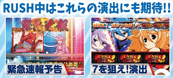 RUSH中は他にも期待できる演出があり、7を狙え!演出はパチスロ風の演出で7が揃えば大当りとなる。