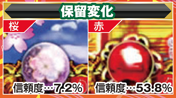 保留変化は桜ではさほど期待できないが、赤になった場合は大チャンス。信頼度が50%以上にまで跳ね上がる。