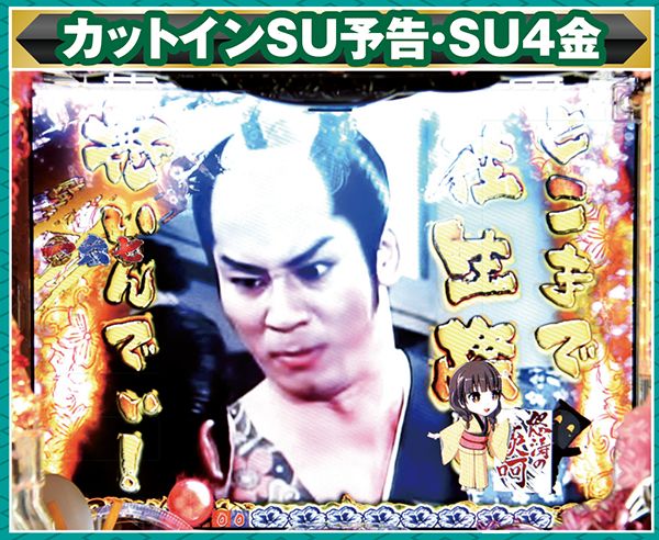 縦スクロールで展開する杉良太郎モードは信頼度を一気に高めてくれるド派手な演出が満載。中でも「怒涛の啖呵」は切る啖呵が長ければ長いほどチャンスとなるので、金さんのセリフが次々飛び出ることに期待しよう。