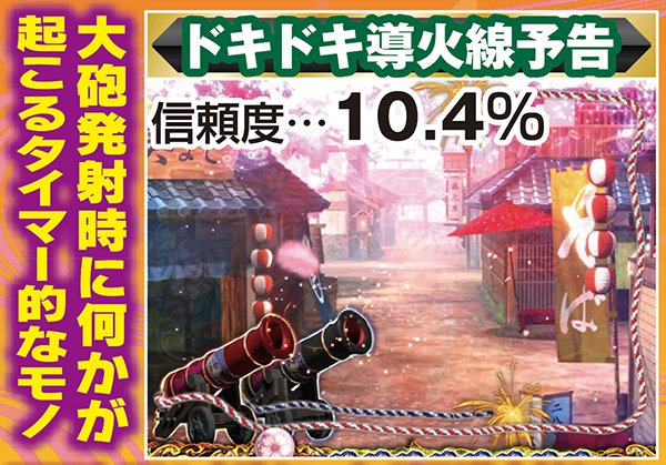 画面左下の大砲につながる導火線に火がつけばドキドキ導火線予告。大砲の着火が長引くほどチャンスだ。