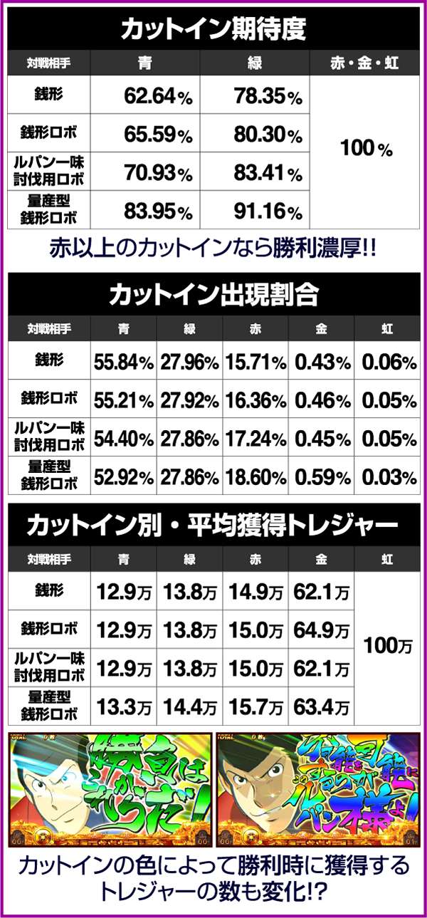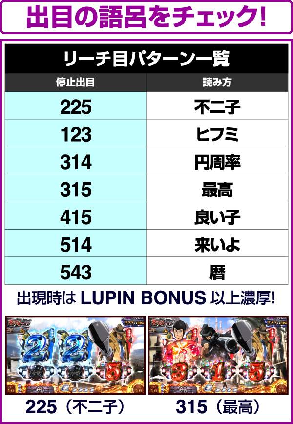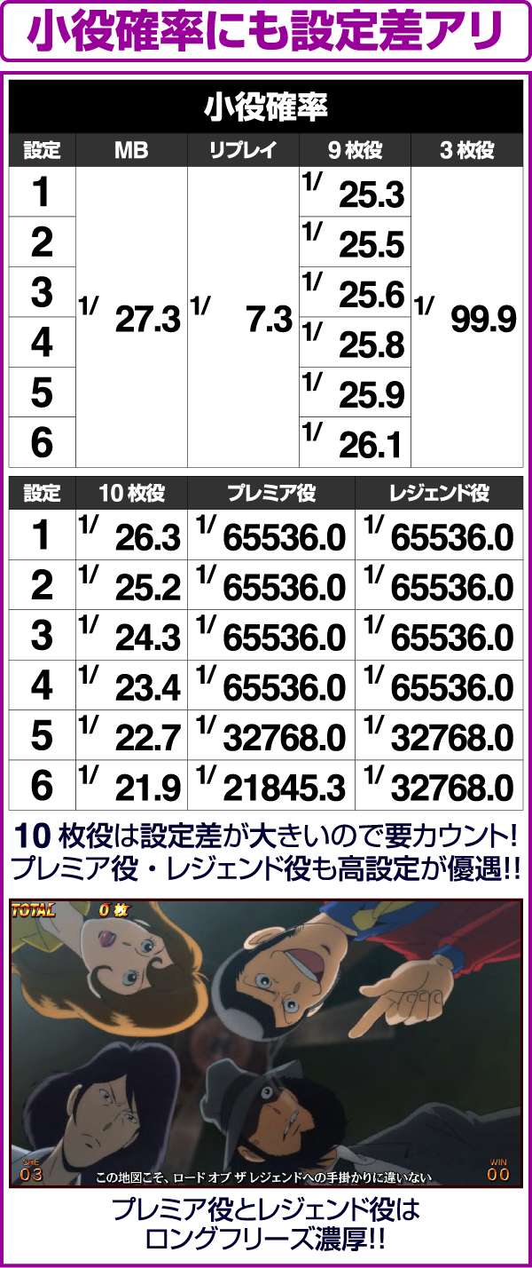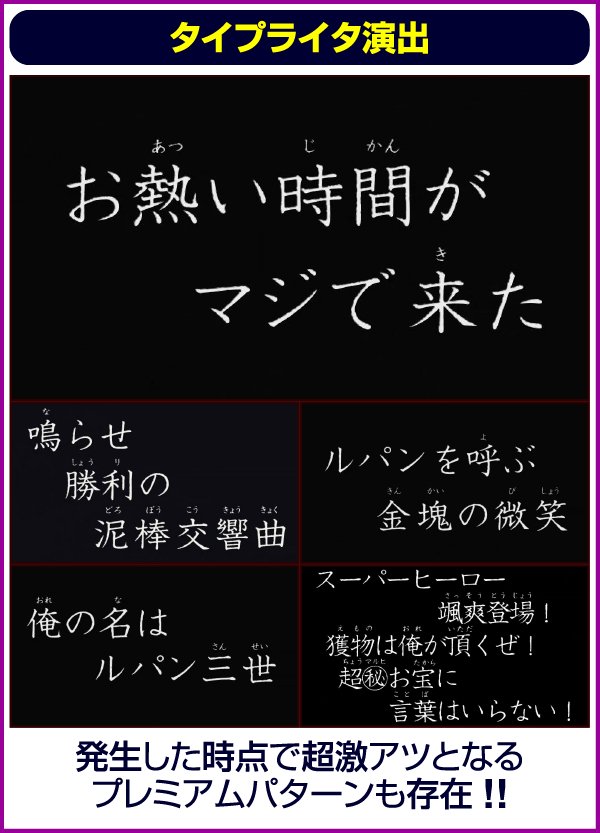 プレミア役はメインリールでルパン三世絵柄が、レジェンド役はレジェンド絵柄が停止。