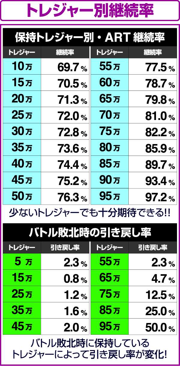 爆発力はあるのでちょいちょい打ってますが、赤系演出の期待度が低いのは打ってて萎えますね…。 あと継続確定のセットでトレジャー消費するのはおかしいのでは? 細かい改善をすれば良台になりそうですが…残念。