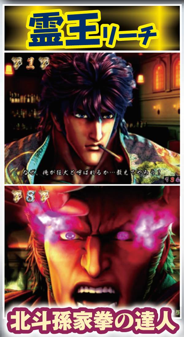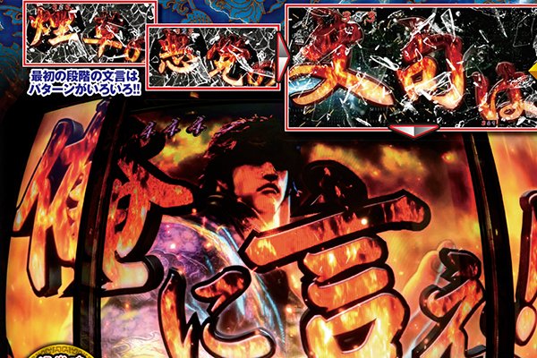 連続予告の強パターンとして発生し、拳志郎の名台詞が拝めるこの予告は、4大演出に数えられる激アツアクション。台詞の種類は複数存在する。