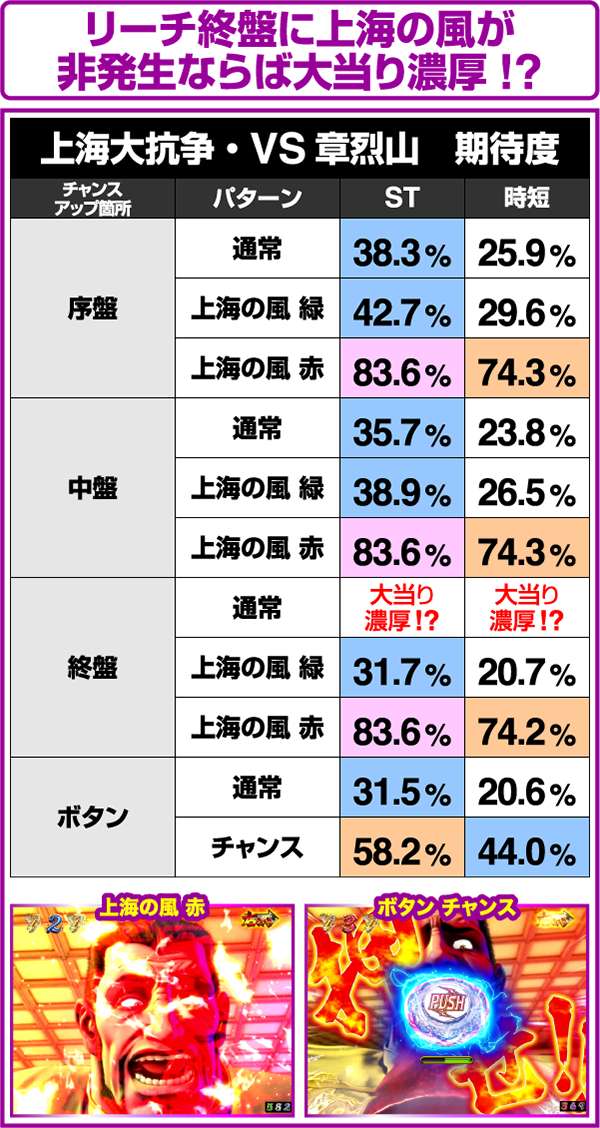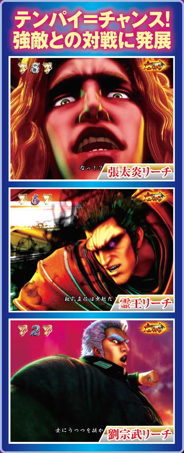 次々と連チャンを生み出す儞已經死了RUSHの大半を占める上海大抗争モード中は、「蒼龍乱舞」や「閻王ゾーン」といった特殊ステージに変化すればバトル勝利の期待がアップする。最強ステージ「天授の儀」に突入すれば連チャンは目前だ。