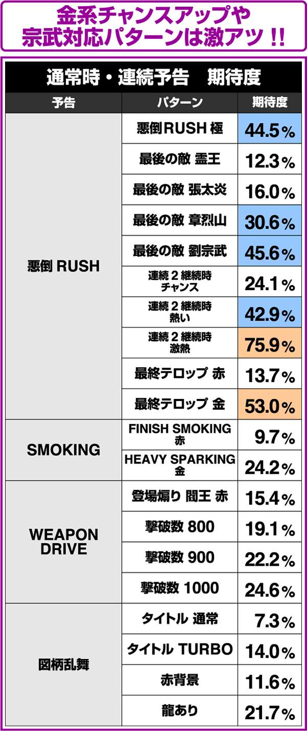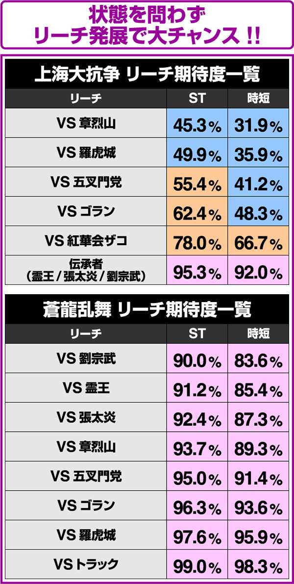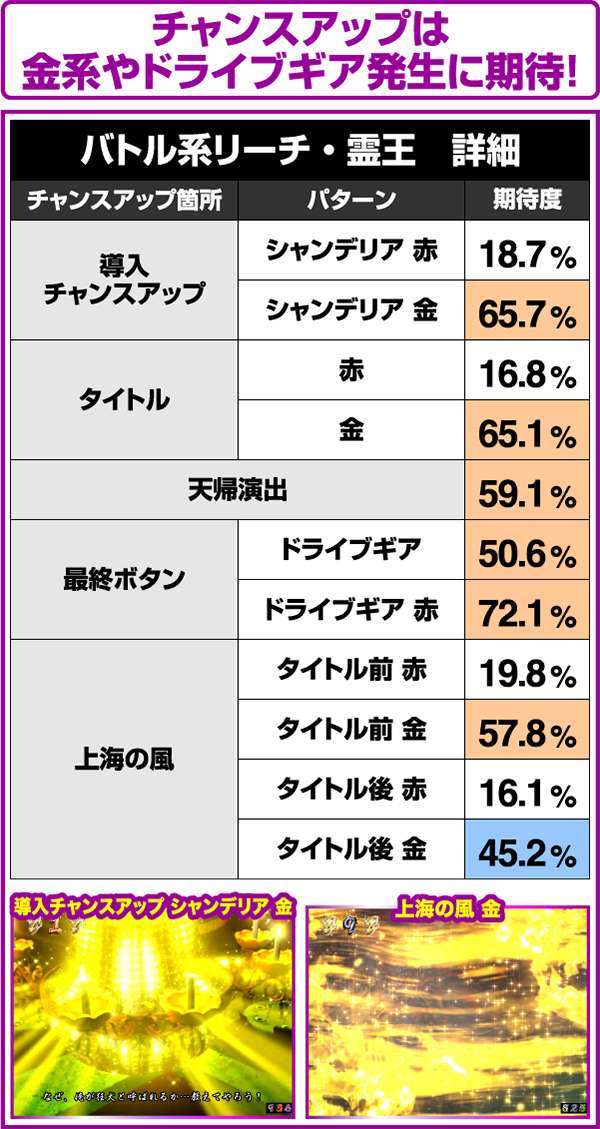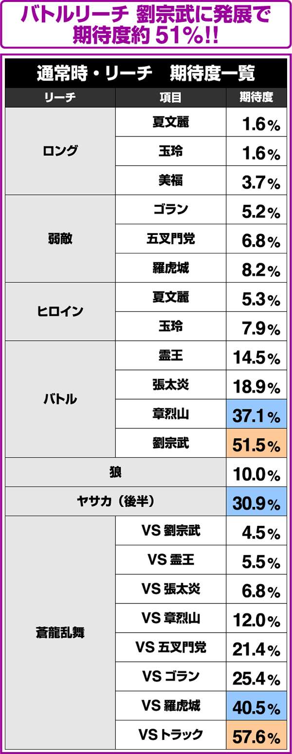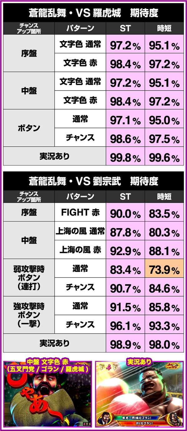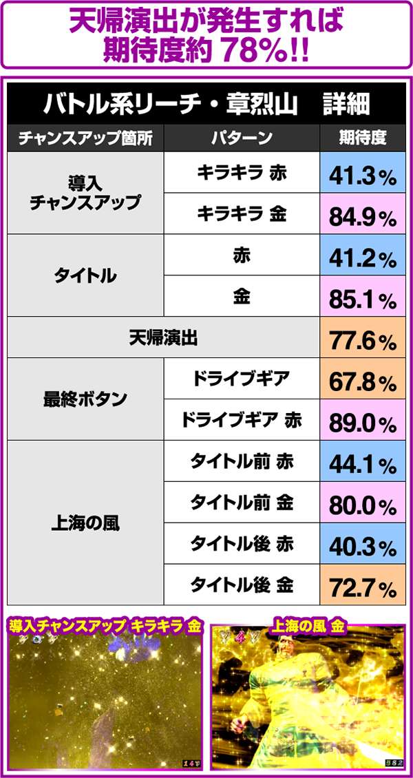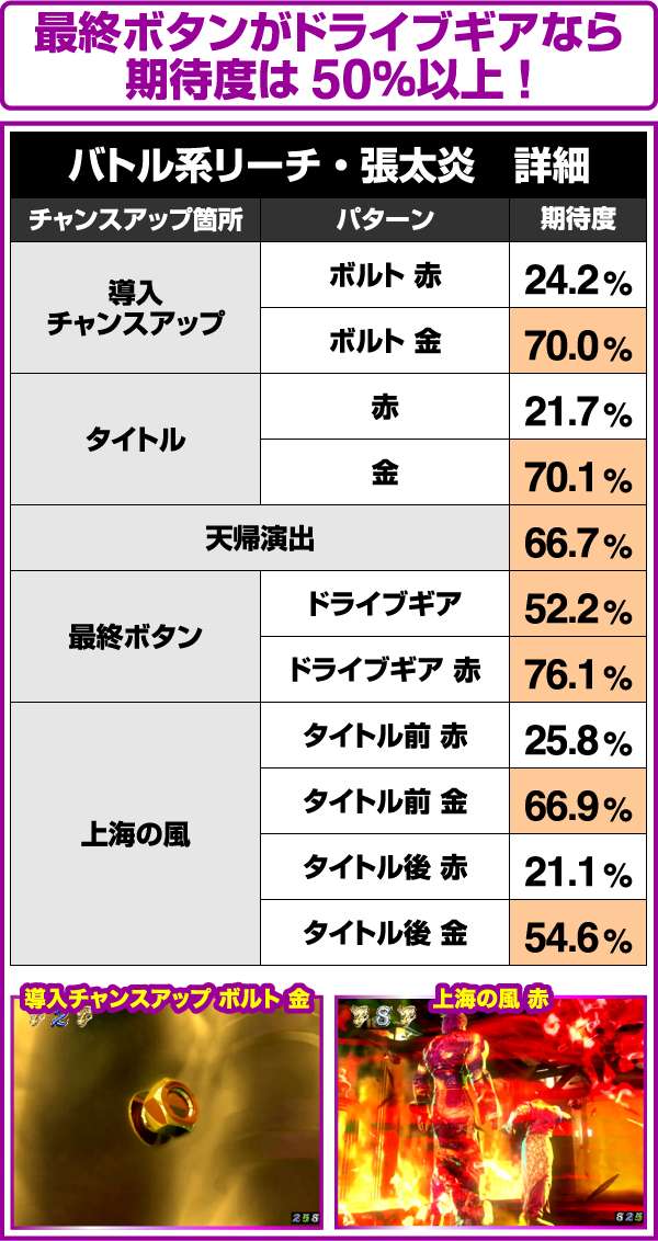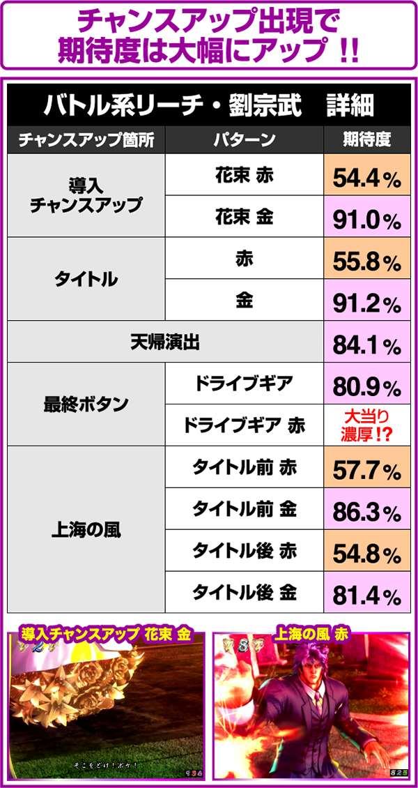 vs劉宗武は別格の信頼度で、その他のバトルリーチに関してはタイトル色や、最終ドライブギアのチャンスアップ発生に期待。