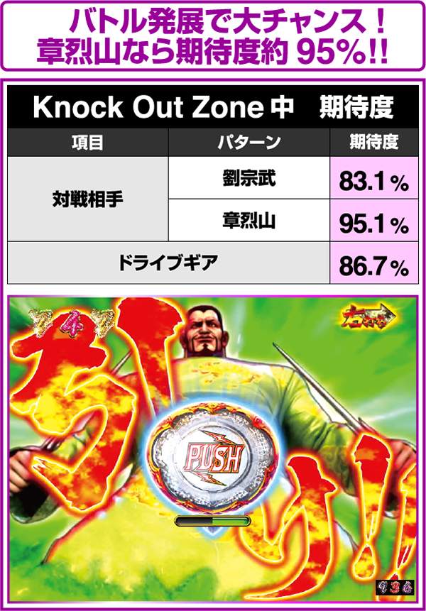 実際に液晶が動くK.O.Visionの発生は信頼度大幅アップの合図となる。スーパー発展時などに作動する役モノにも注目だ。