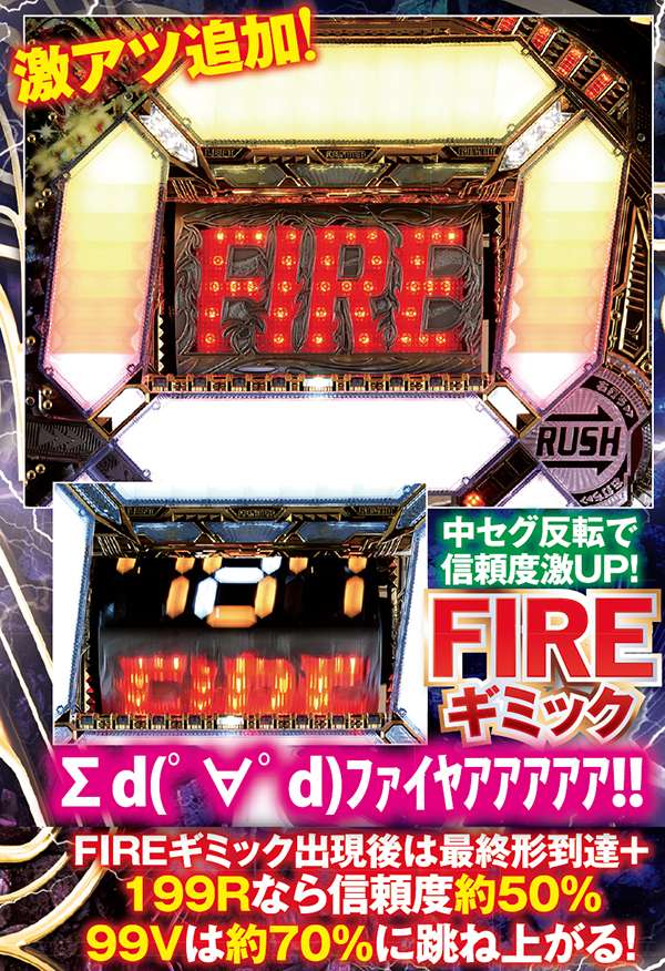 嫌でも視界に飛び込んでくるジャンボ7セグを筆頭に、赤保留、FIREギミックが3大注目ポイント。見た目以上のその実力に期待だ。