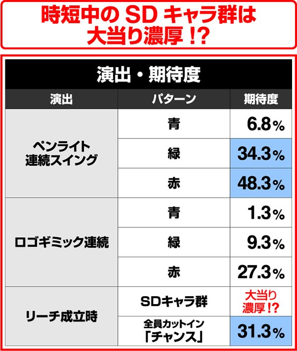 ST中ではハズれる可能性のあるSDキャラ群が時短中では大当り濃厚に!?