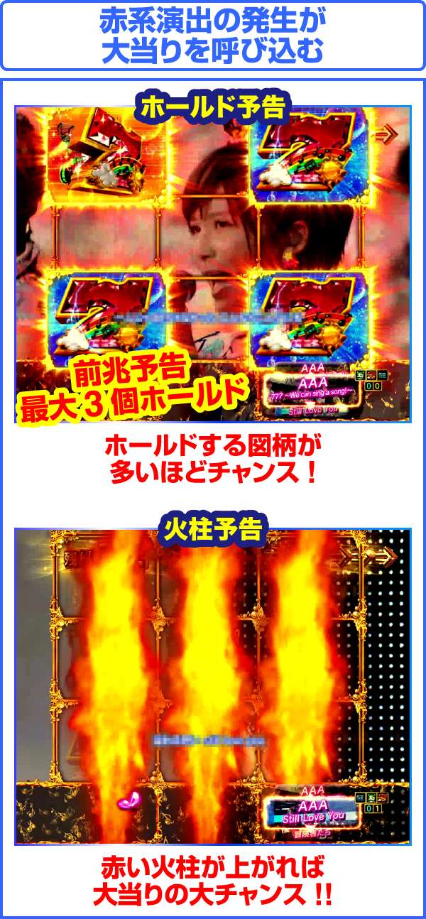 そのほかの予告では赤系が発生すれば、ST・時短中を問わず、大当りの大チャンス。