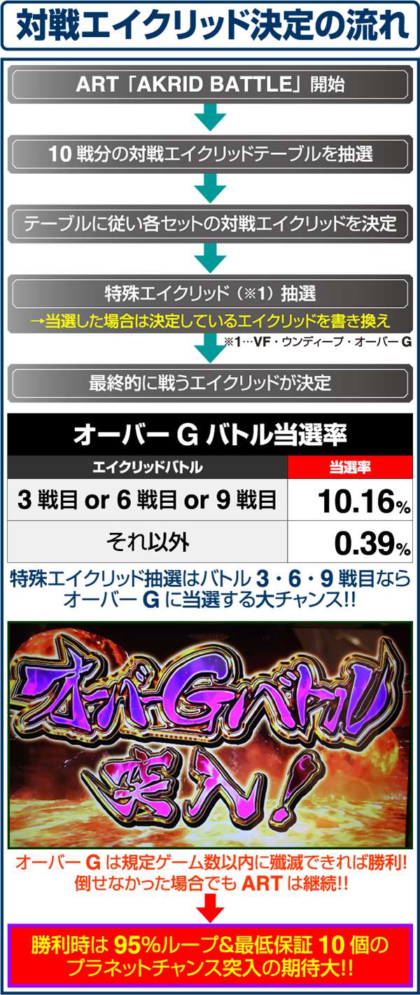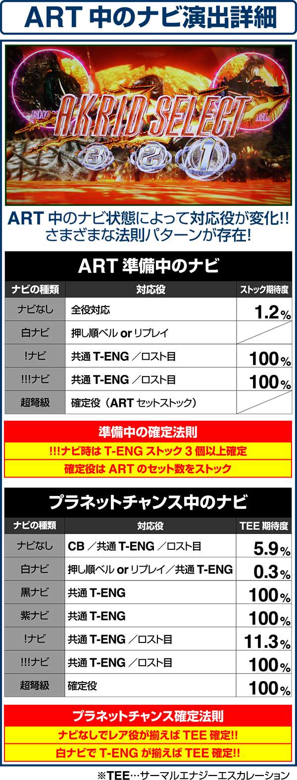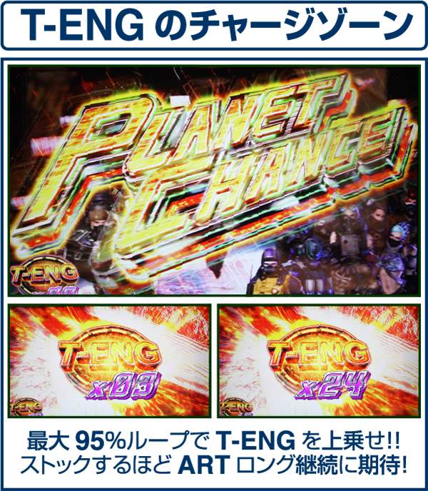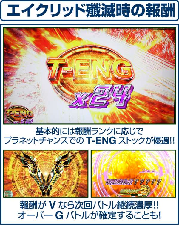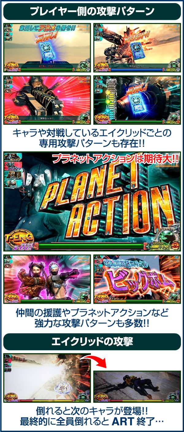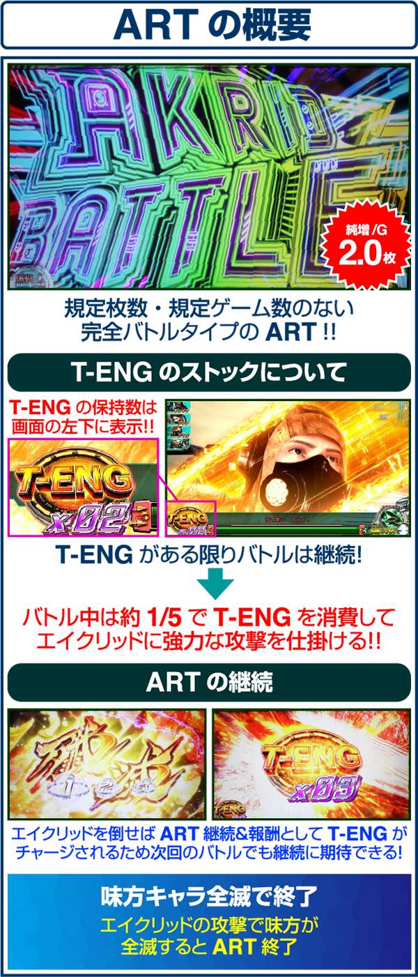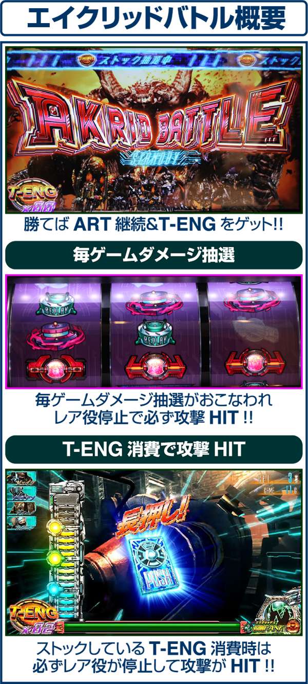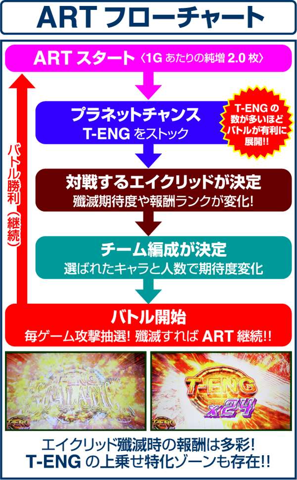 ARTは最初にチャージされるT-ENGと、プレイヤーのヒキでエイクリッド殲滅を目指す…という流れとなり、バトル中にエイクリッドを殲滅できれば再びT-ENGがチャージされバトルに突入。