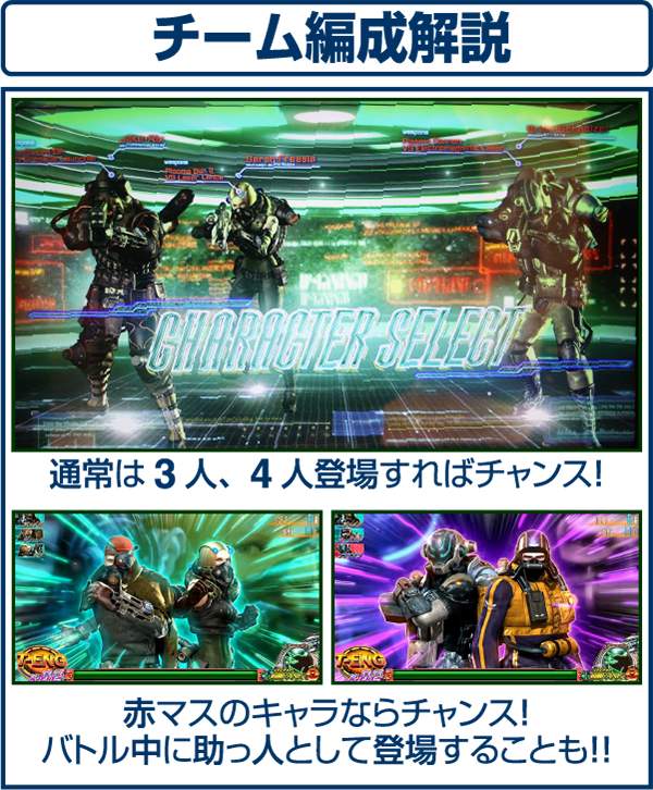 また、バトル中に助っ人としてキャラが追加されるパターンもある。