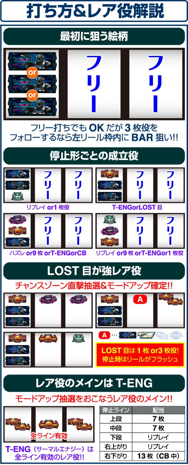 LOST目(1枚or3枚役)のみフリー打ちで取りこぼす可能性があるのだが、LOST目の出現確率は低いため、基本的にフリー打ちでも問題なし。