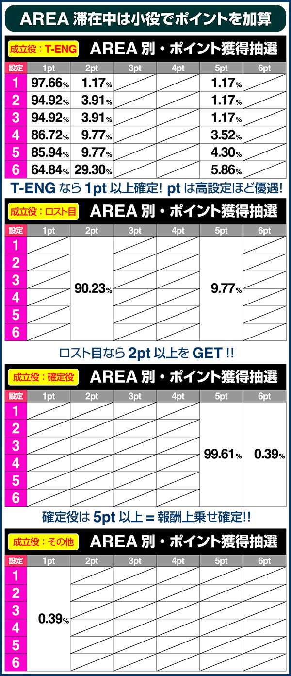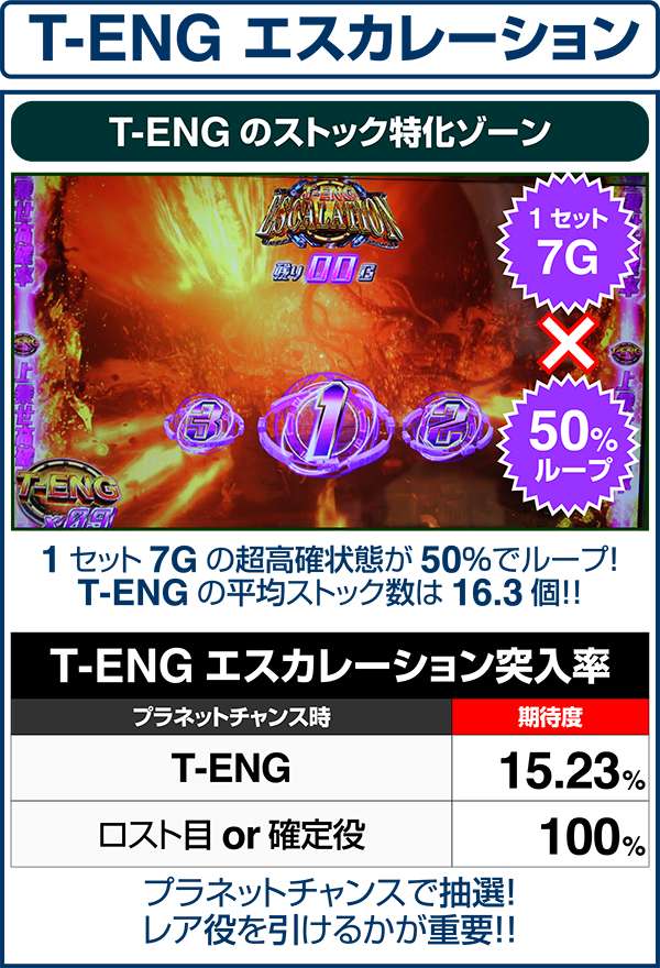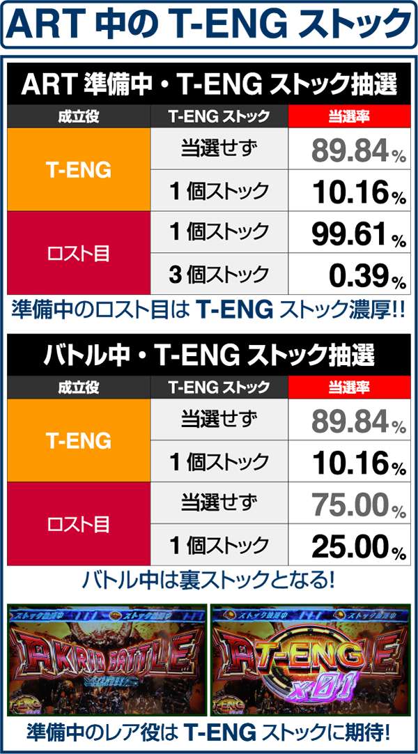 ARTの準備中にハマった場合はコインロスをしてしまうが、レア役でT-ENGストックが抽選されるうえ、ハマるほどキャリアポイントが加算されるというプレイヤーにとって有利な条件が揃っている。