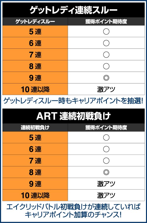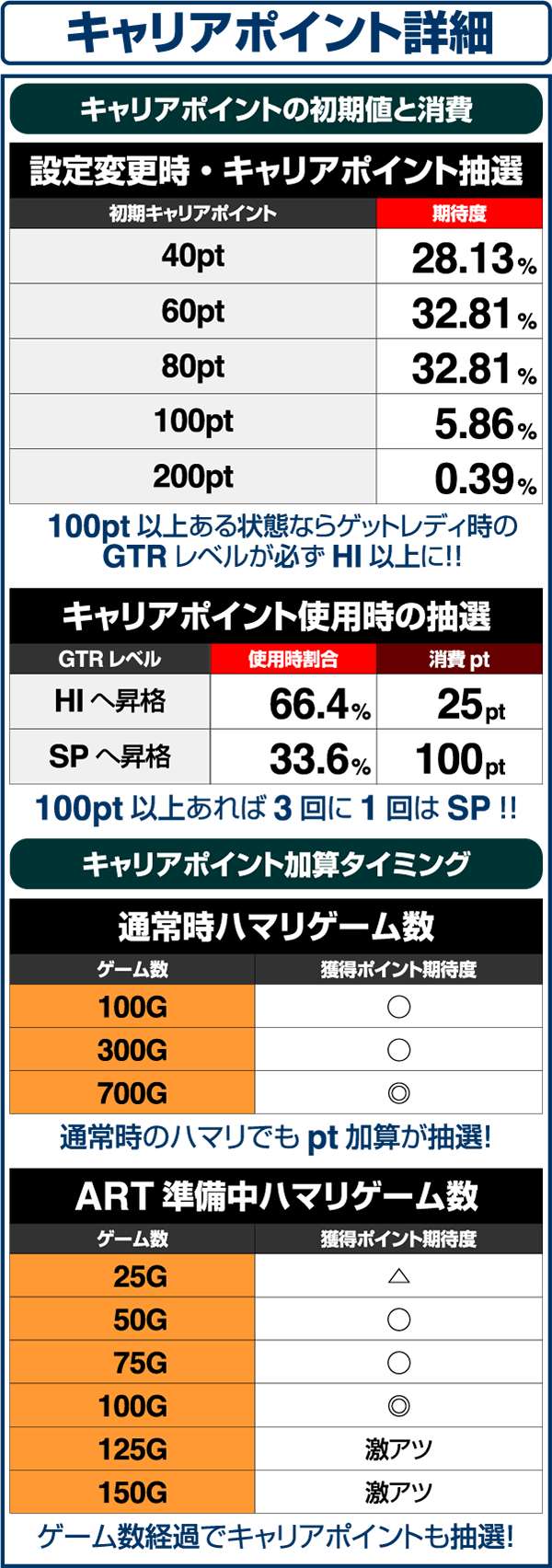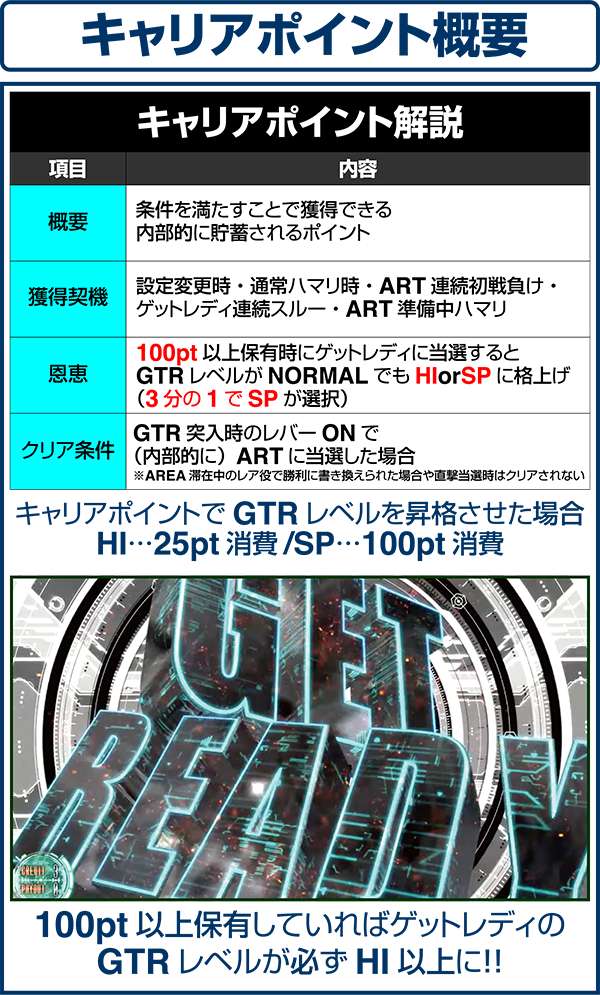 キャリアポイントを100pt以上保持していればゲットレディのGTRレベルが優遇=ARTに当選しやすくなる。