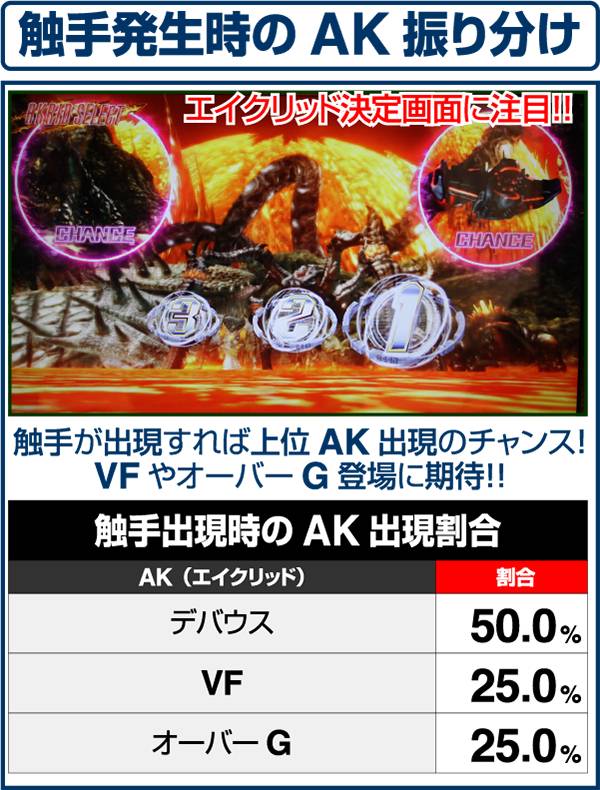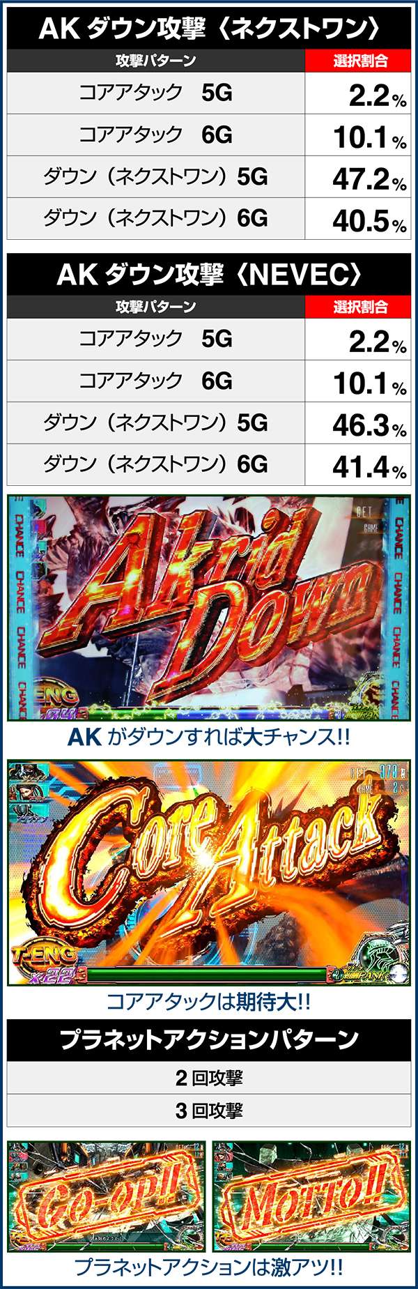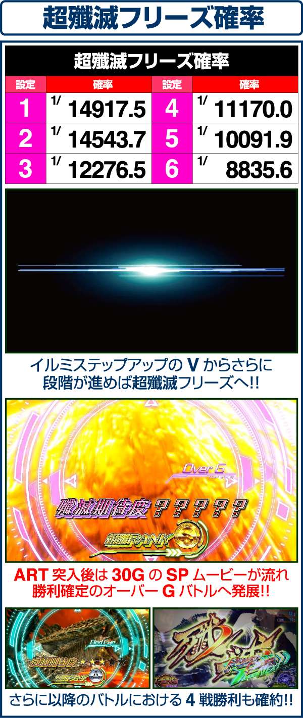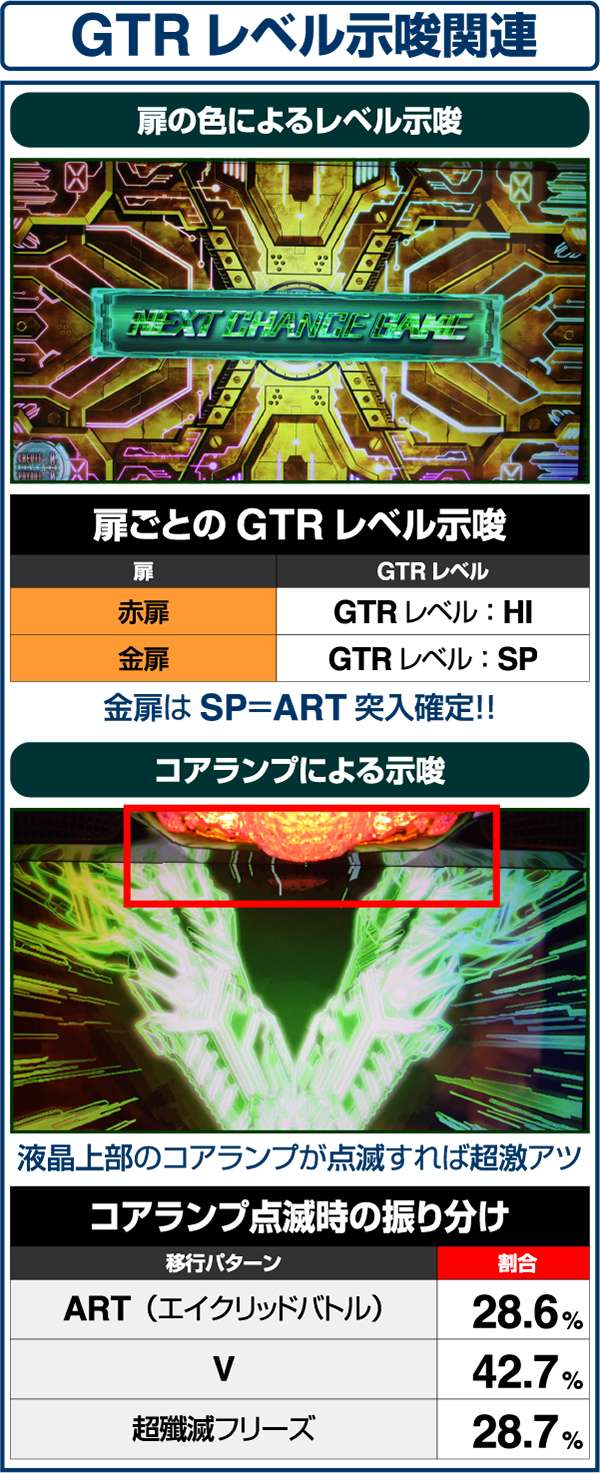 イルミステップアップ発生前にコアランプが点滅していればART以上濃厚。バトル勝利濃厚となる「V」やプレミアムの「超殲滅フリーズ」となる可能性も高くなっている。