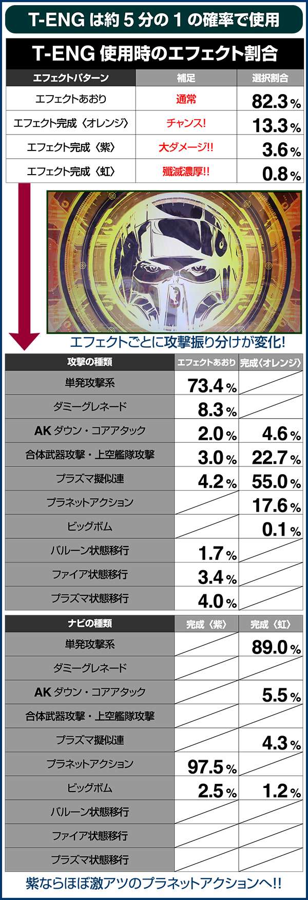 T-ENGを使った攻撃はバトル中の約5分の1で選択され、T-ENGを消費して確実にダメージを与えることが可能。