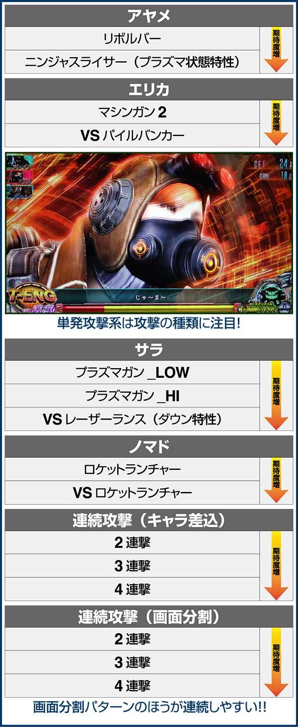 ART中のナビは色だけでなく、ナビ発生時の演出にも注目したい。味方攻撃シーンで白以外のナビが発生していれば攻撃HITの大チャンスだ。