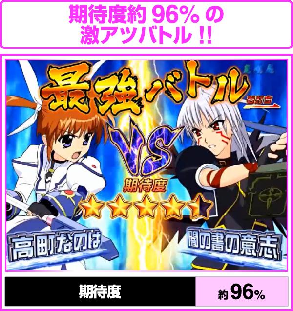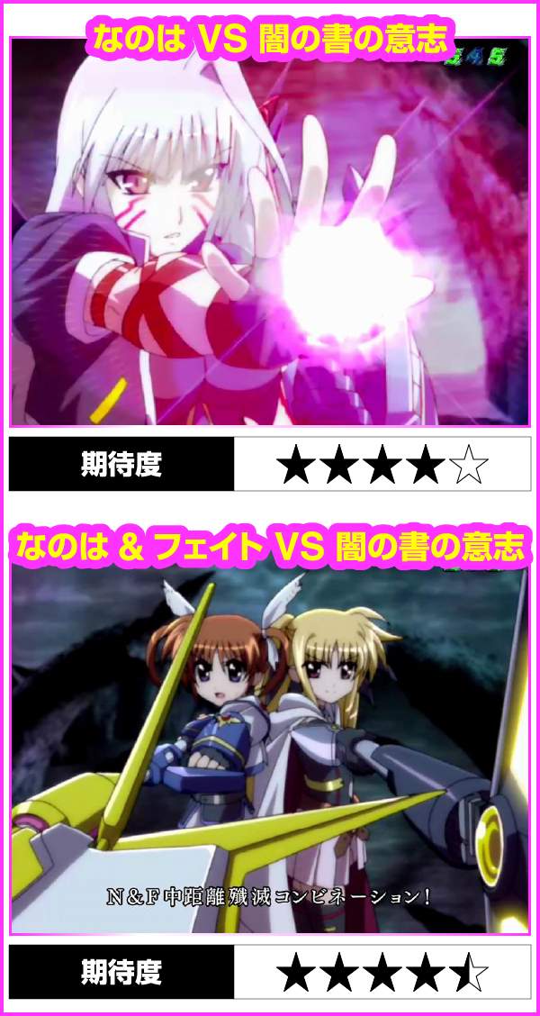 なのは・フェイト共通で、さまざまなタイミングから発展。闇の書の意志と戦う「最強バトル」は期待度約96%と激アツなのだ!