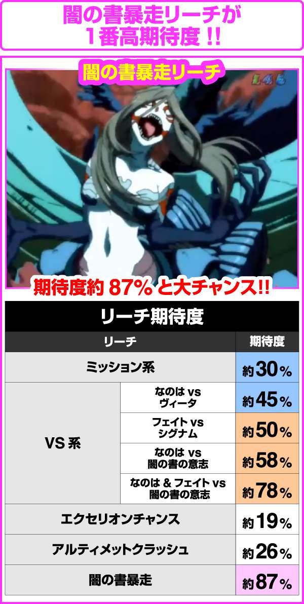 VS系は対戦キャラによって、期待度が大幅に変化。闇の書暴走は激アツだ。