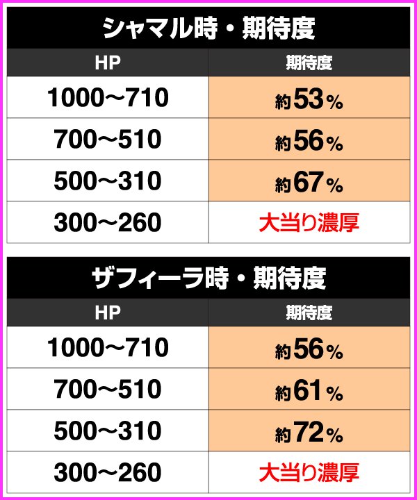 残りHPが期待度に直結し、710以上では勝利期待度の高いザフィーラでもピンチ。