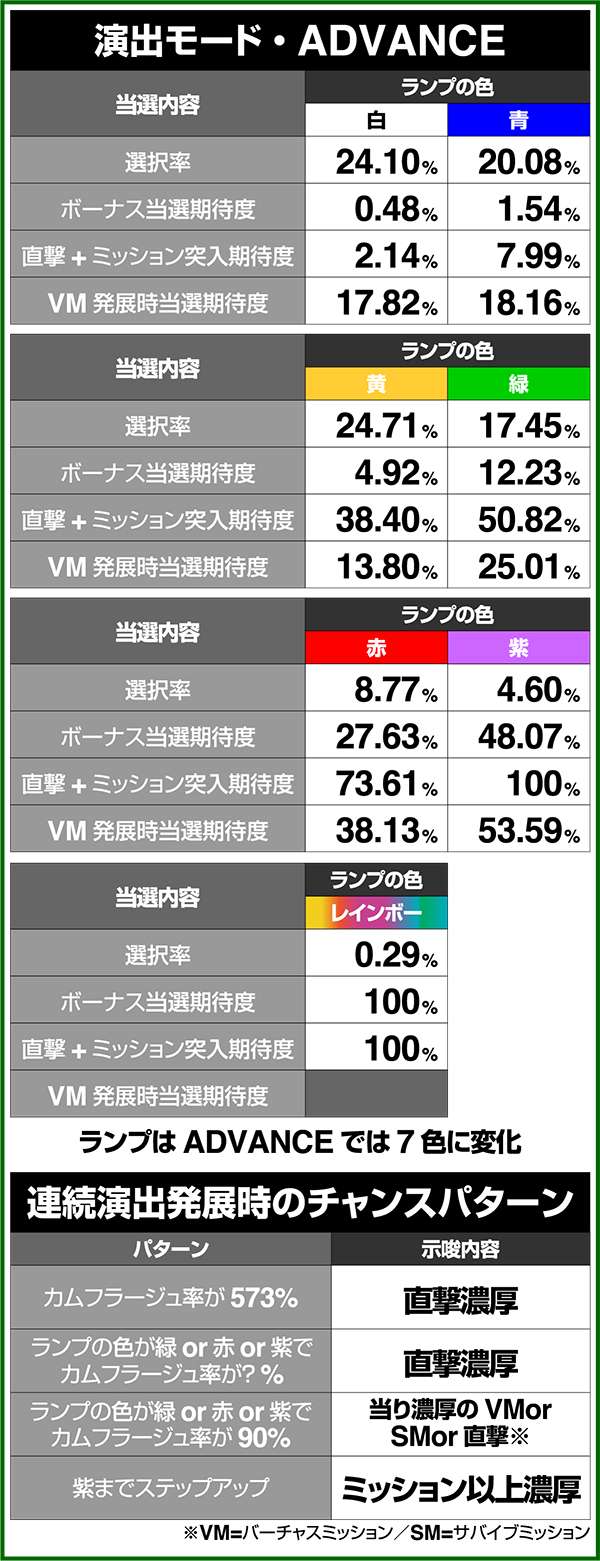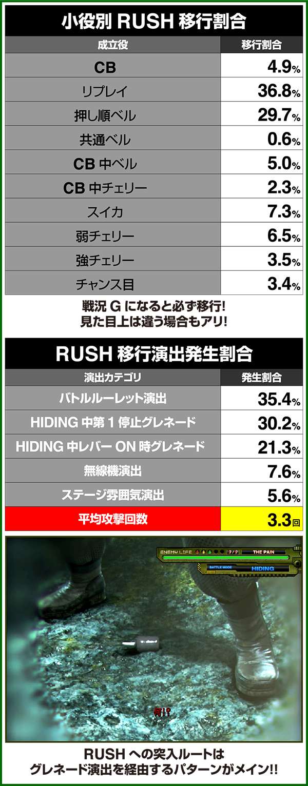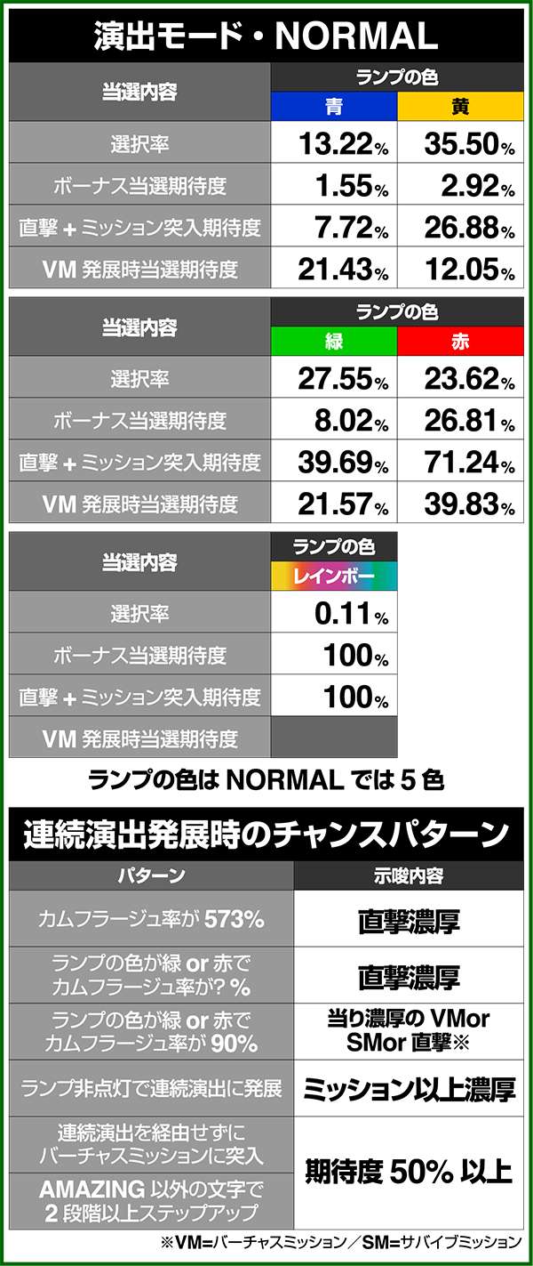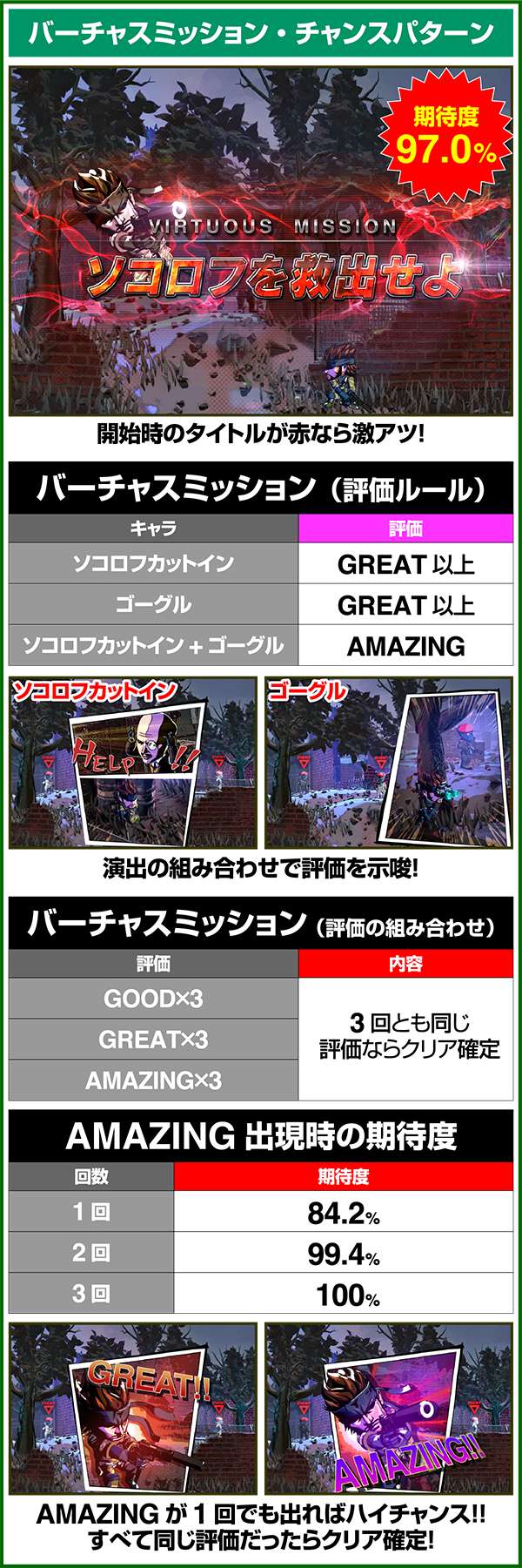 サバイブミッションは全役でボーナスorARTを抽選する自力CZとなっており、平均期待度は約60%。