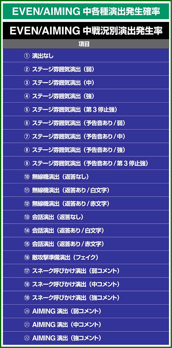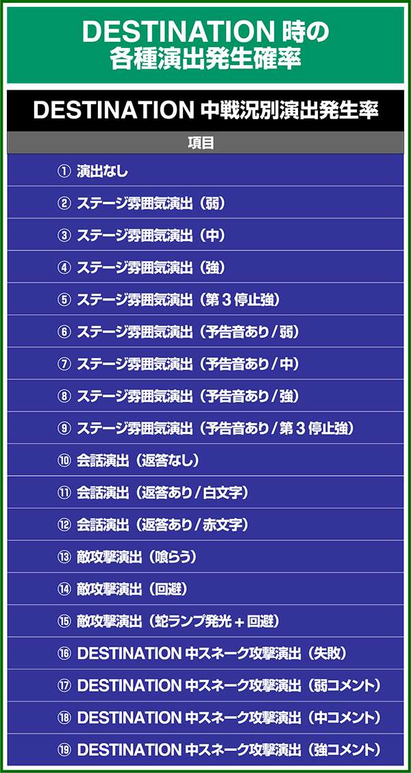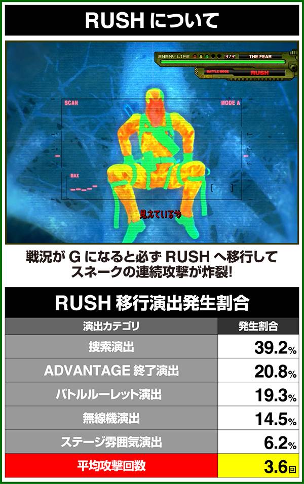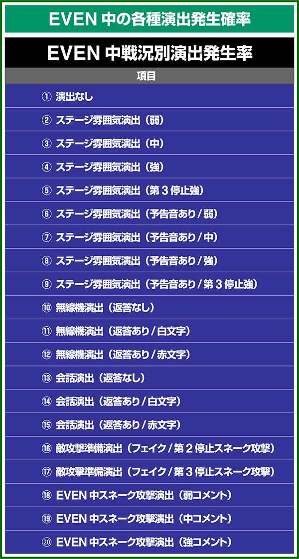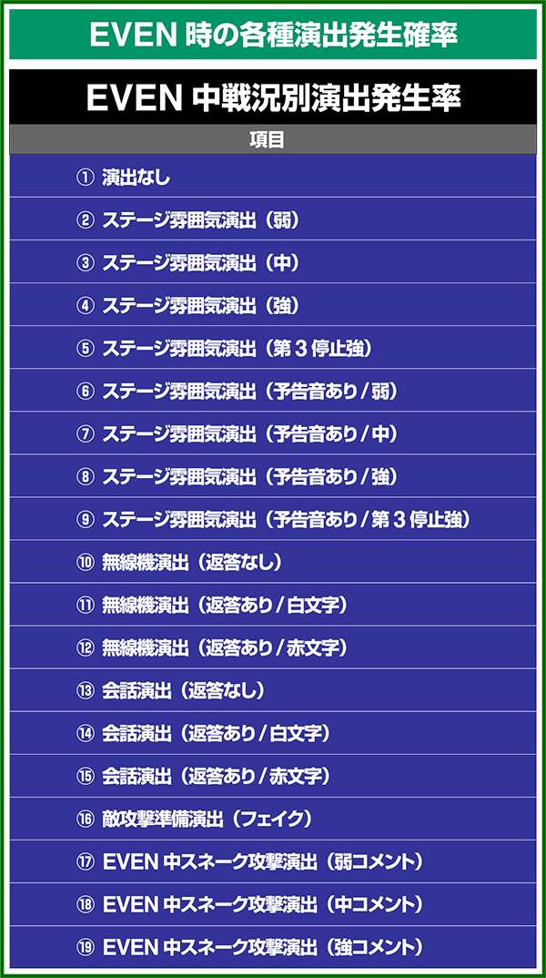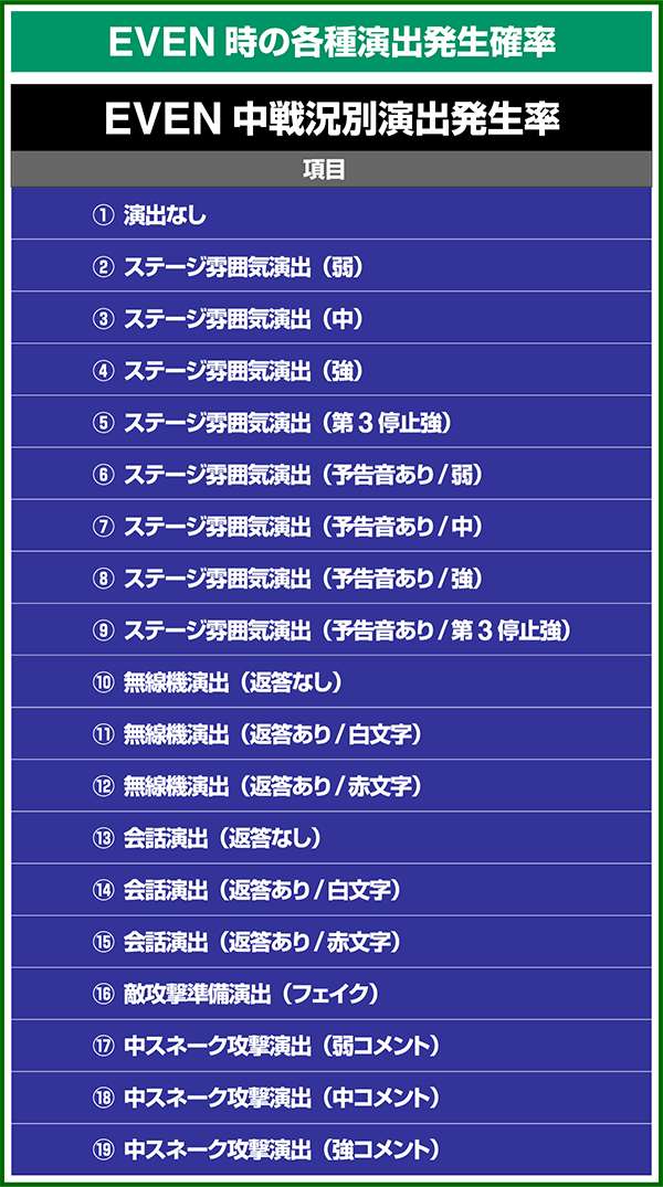 各引き戻しゾーンで当選した場合は必ずART「スネークイーター作戦」に突入(ボーナスにはならない)。