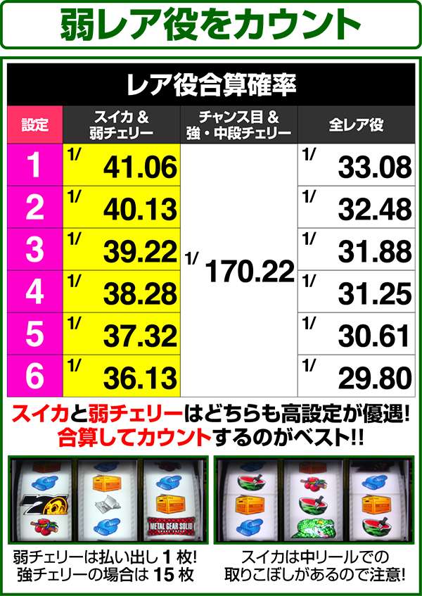 スイカ&弱チェリー確率は設定差大
