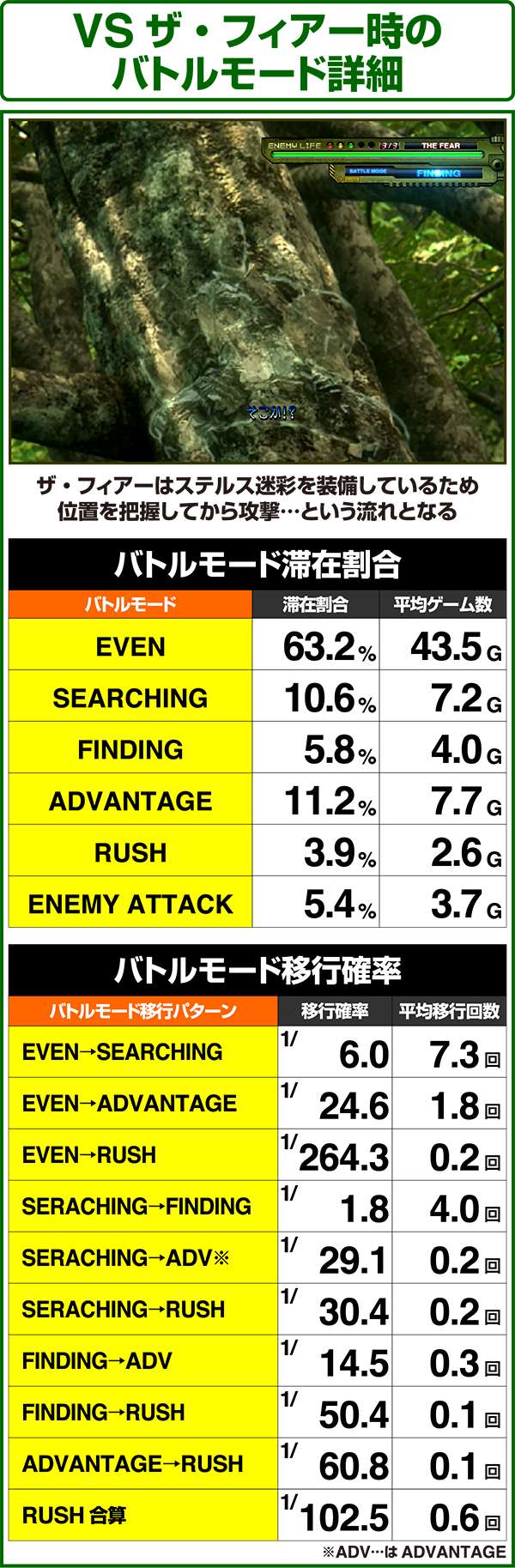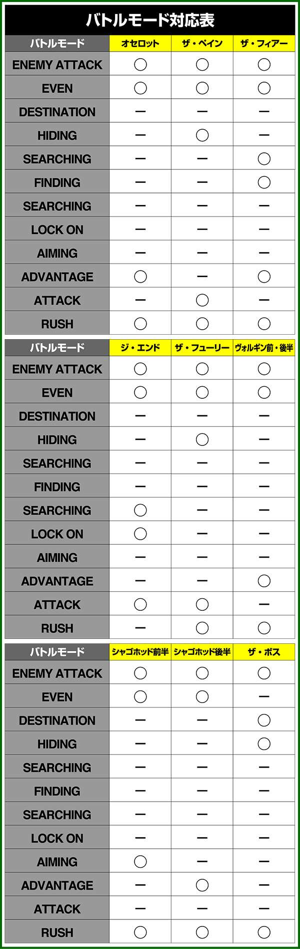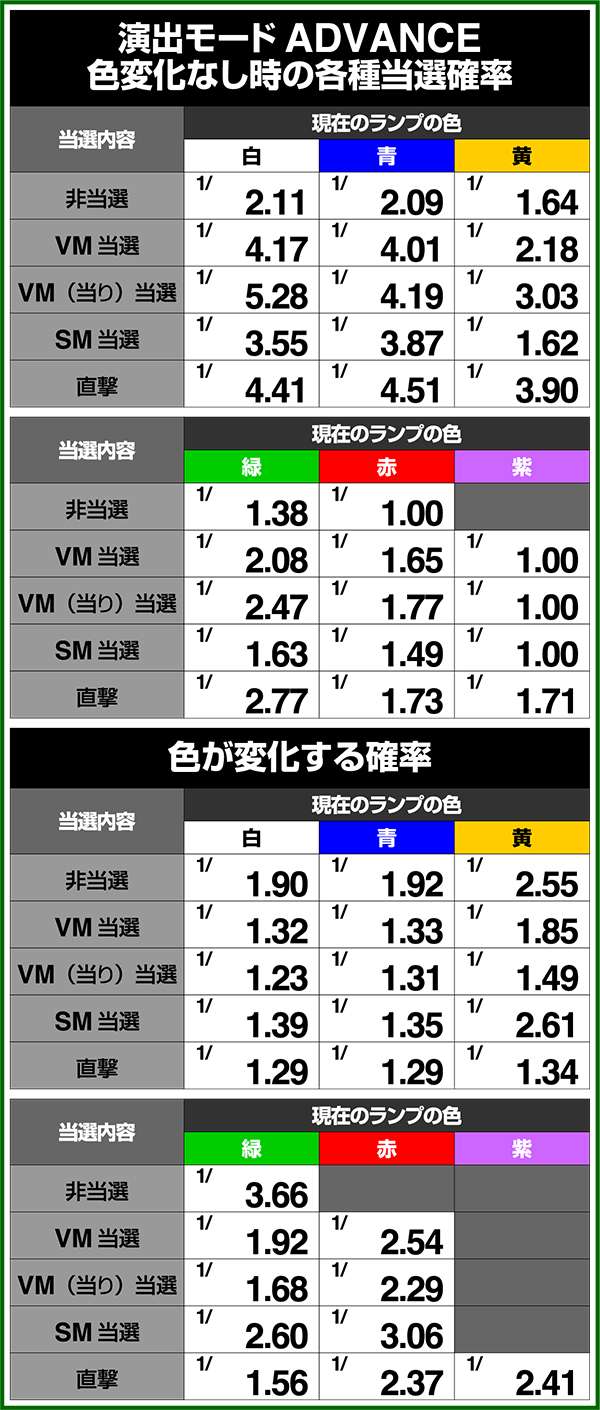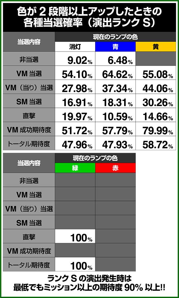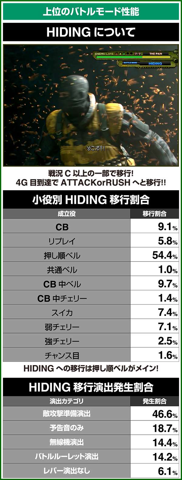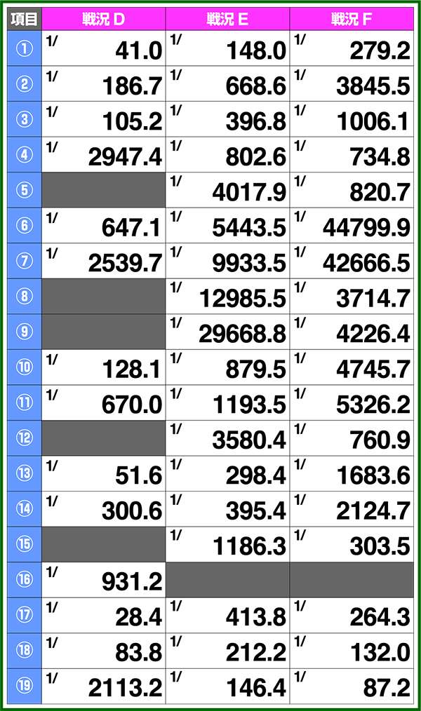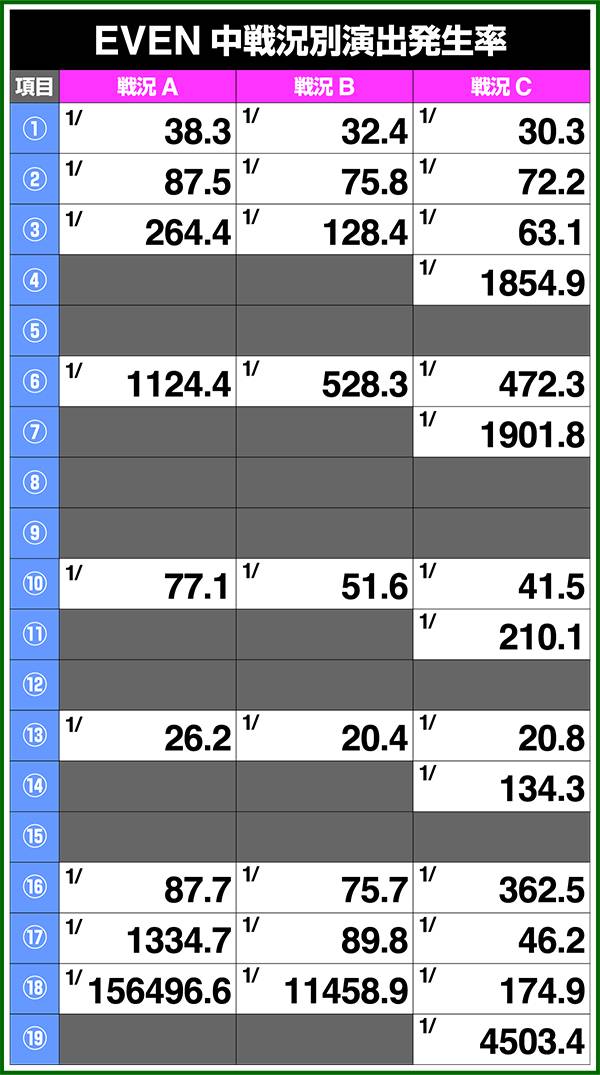 バトルモードは戦況に応じて移行するので、つねに一定の確率で抽選しているわけではないため期待度や確率の数値はあくまで平均値となる。