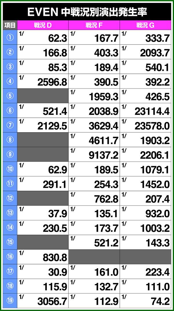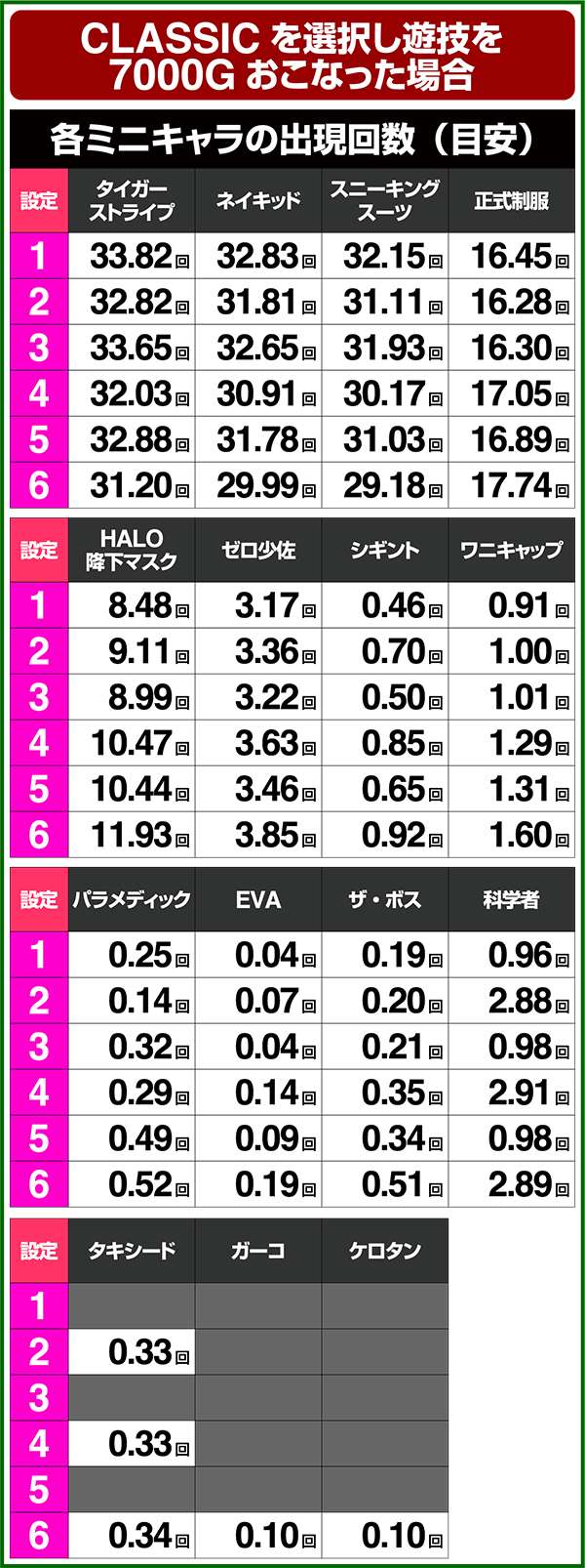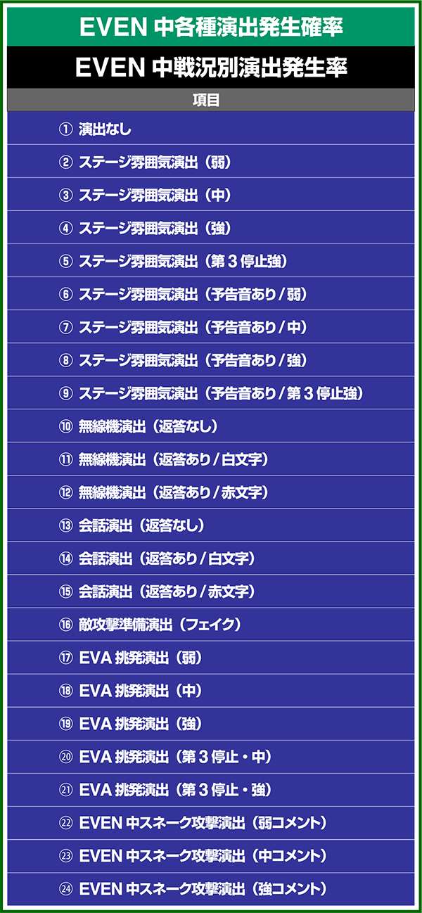 とくにEVAは設定1と6で約5倍の差があるため、出現時はしばらく様子をみたいところだ。
