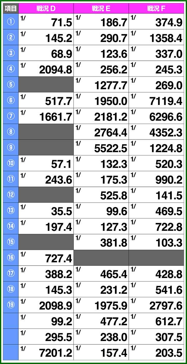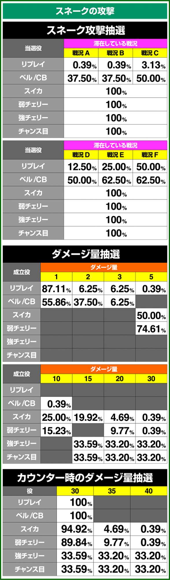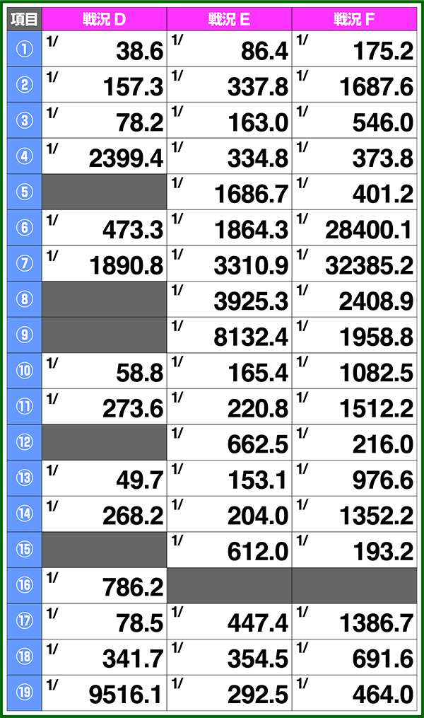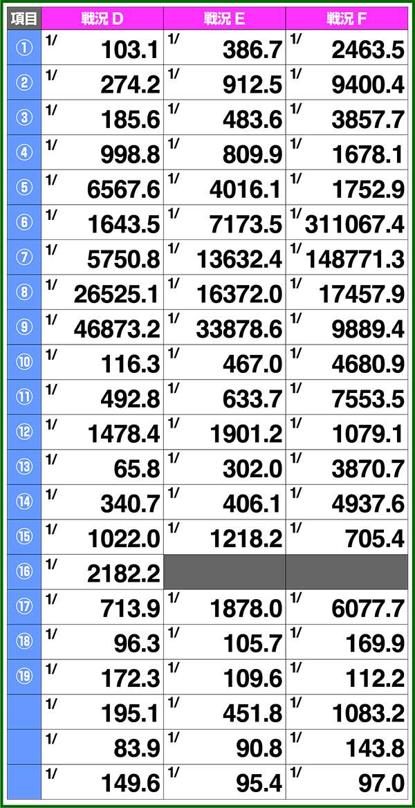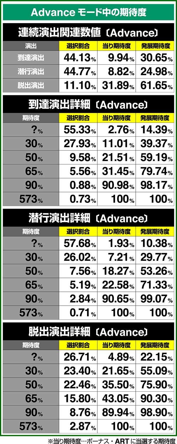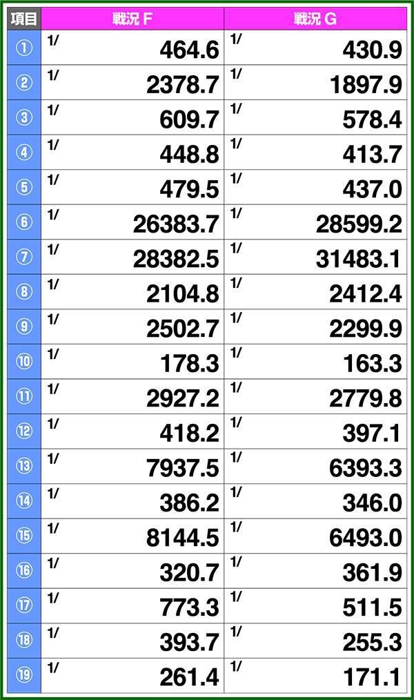 小役確率・各種当選期待度