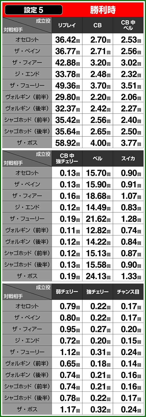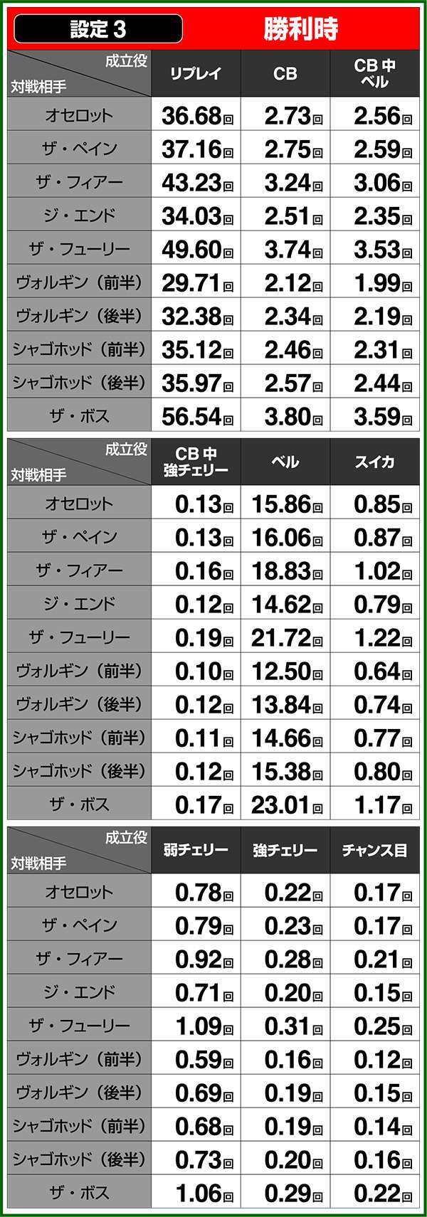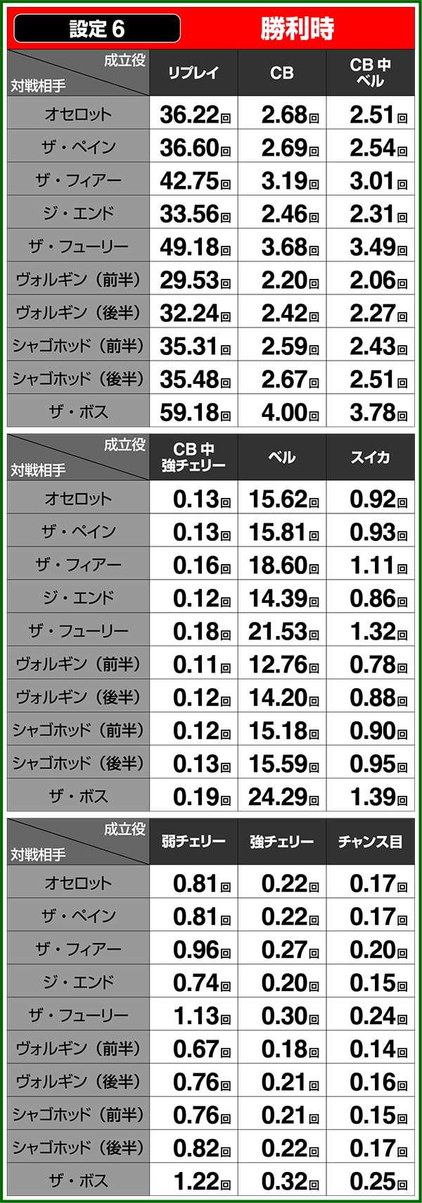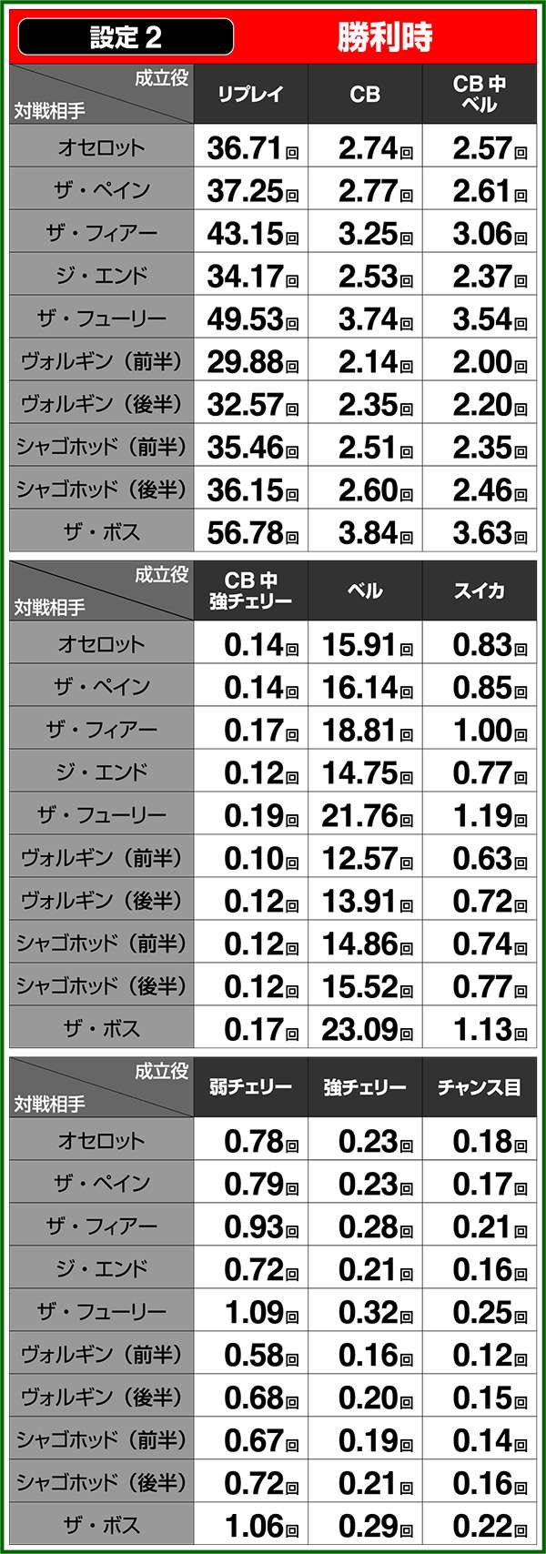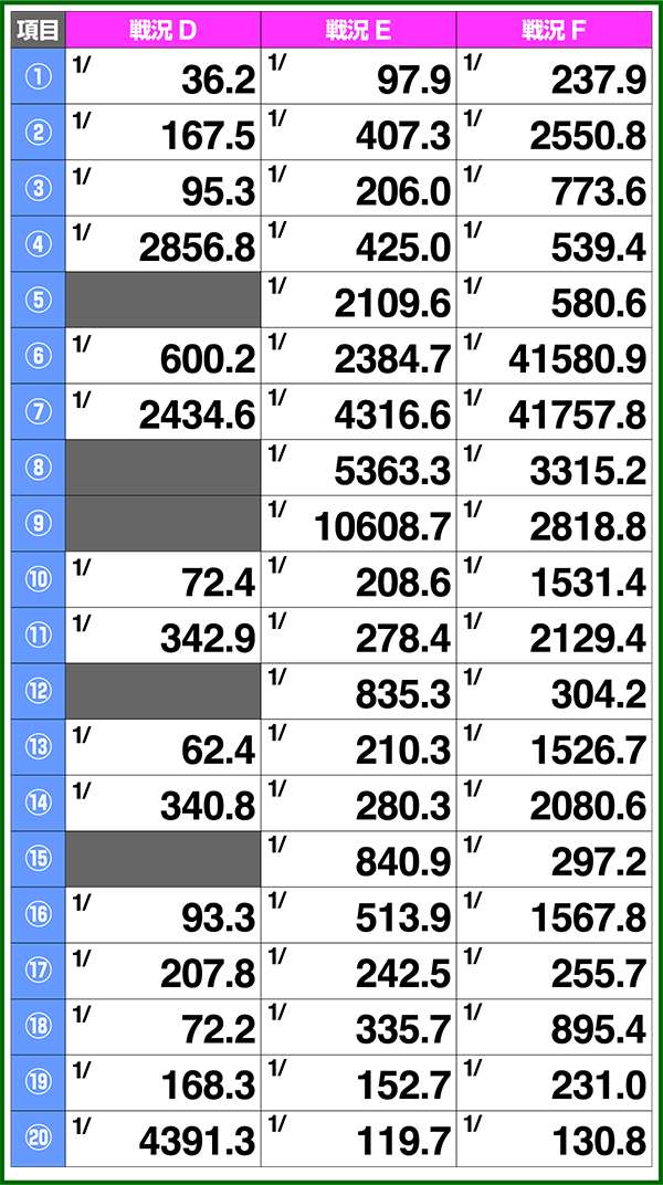 小役確率・各種当選期待度