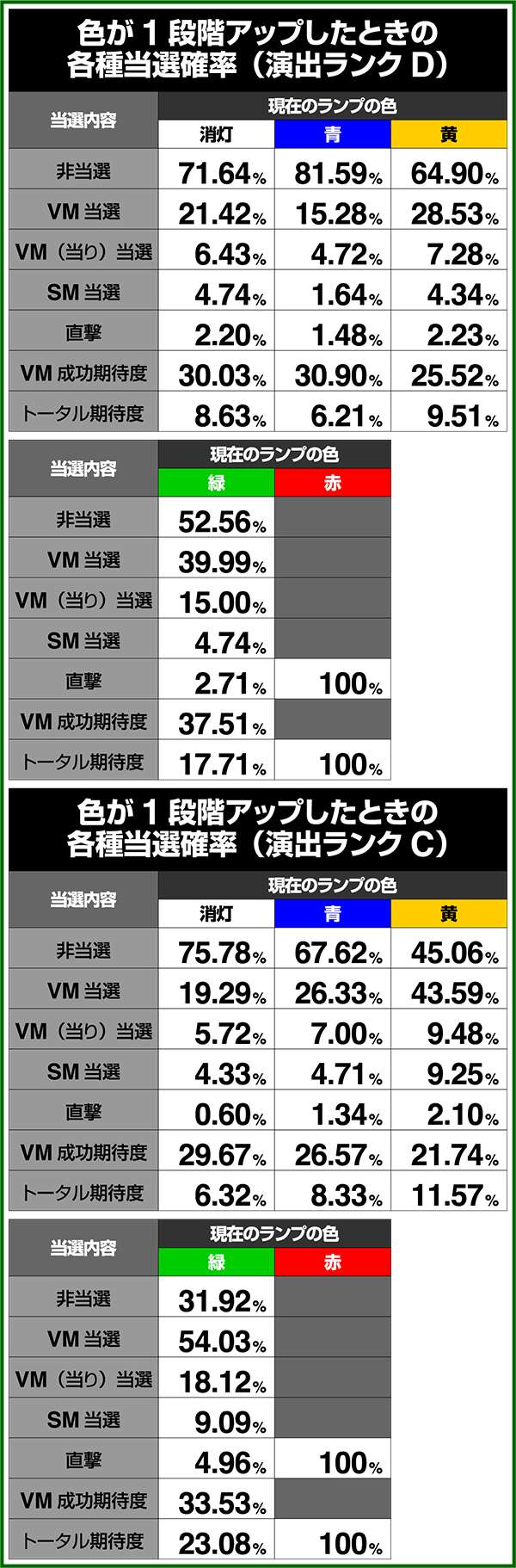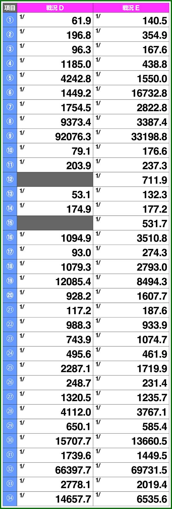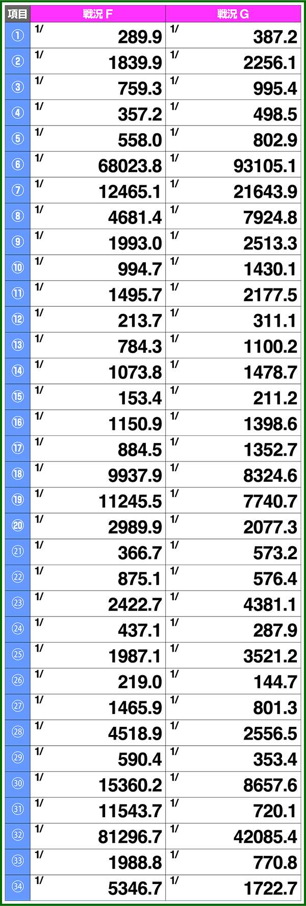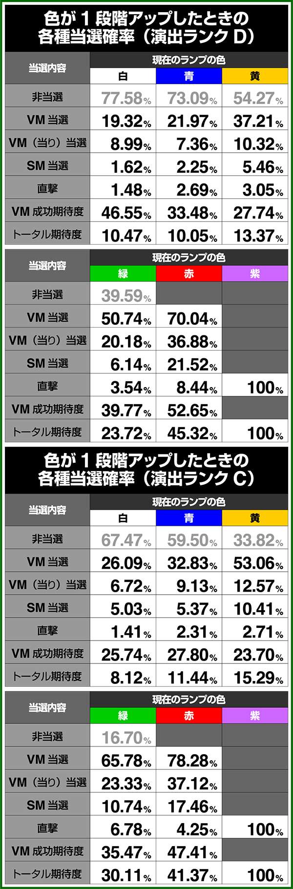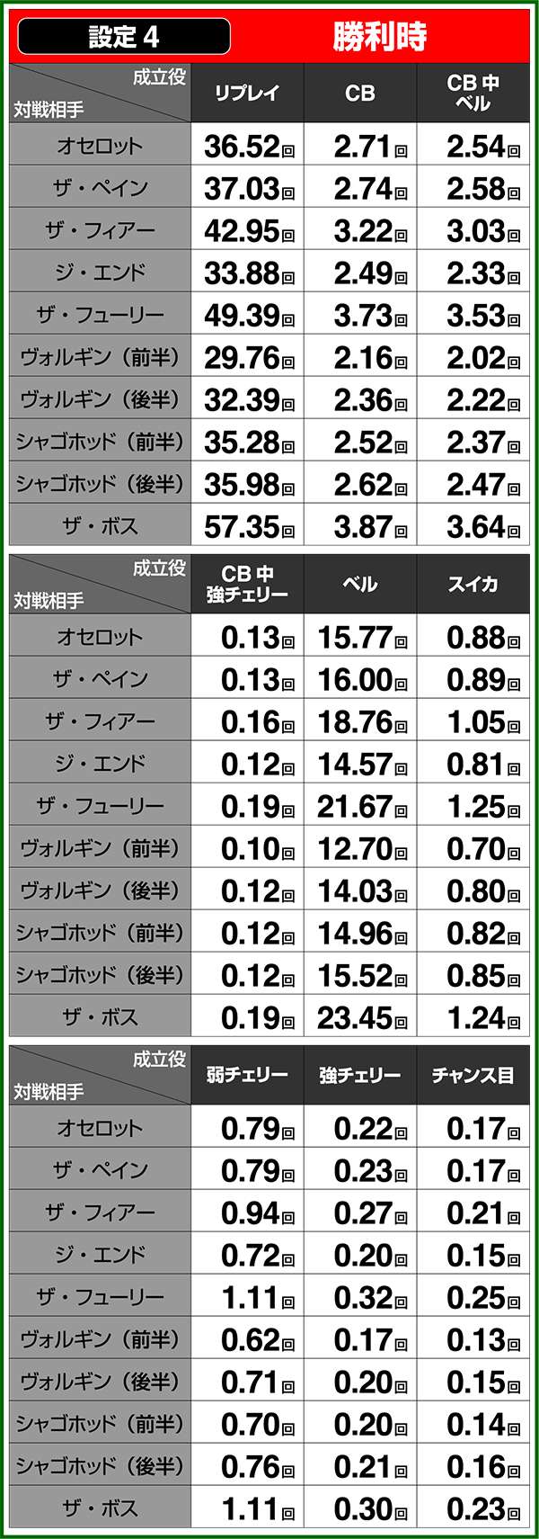 小役確率・各種当選期待度