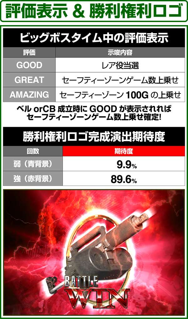 ビッグボスタイム中の評価表示&勝利権利ロゴ