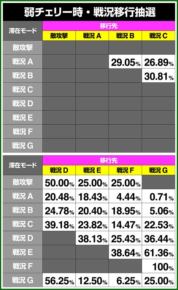 戦況G滞在時のみ、保障ゲーム数を消化後に移行抽選をおこなっている。