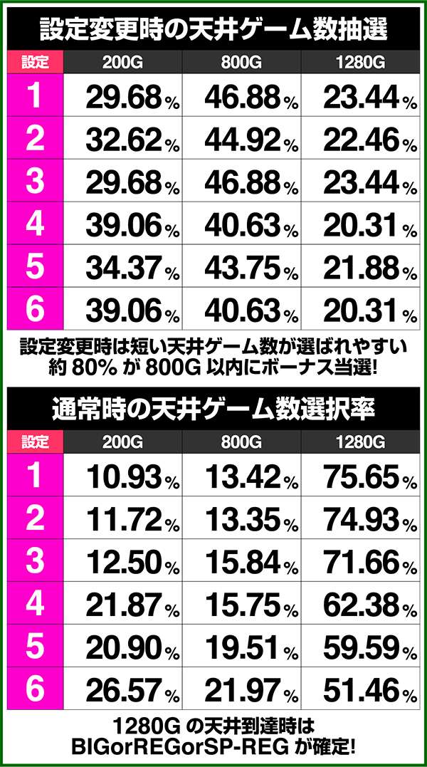設定ごとのモード振り分けと天井ゲーム数