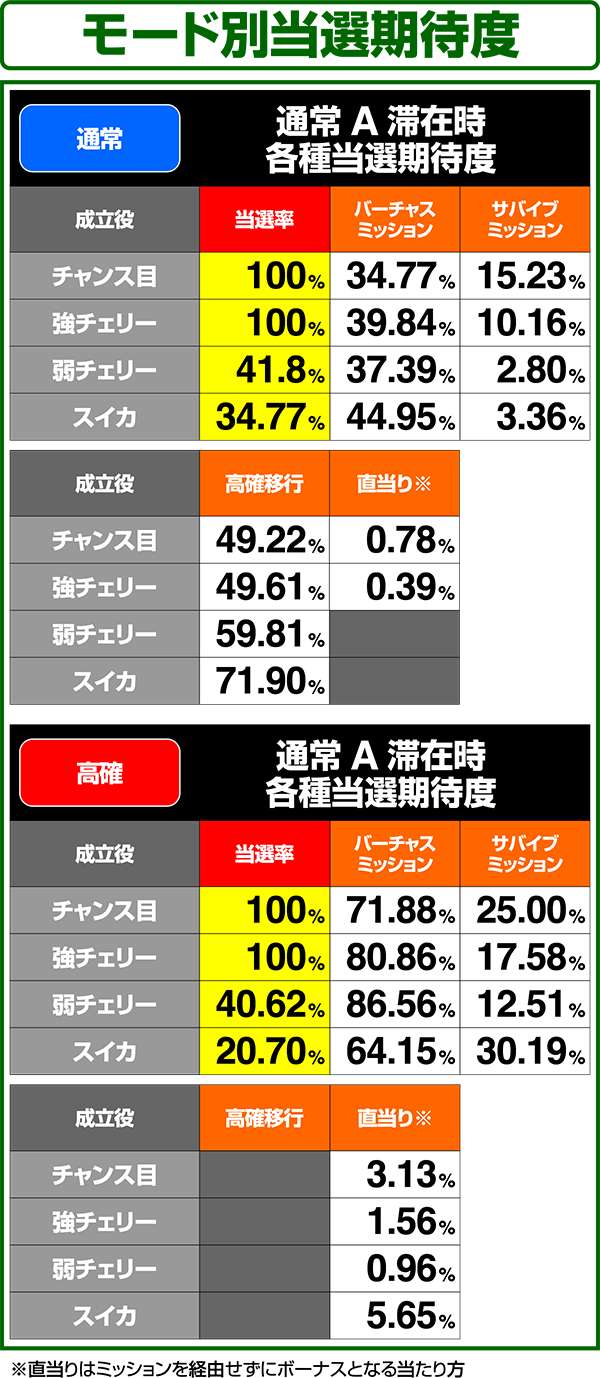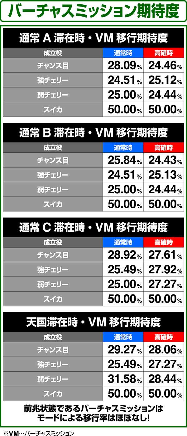 小役ごとのバーチャスミッション当選率