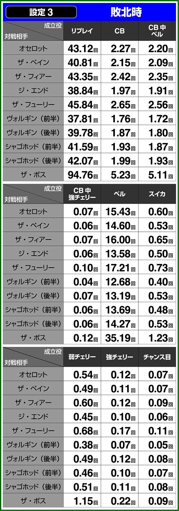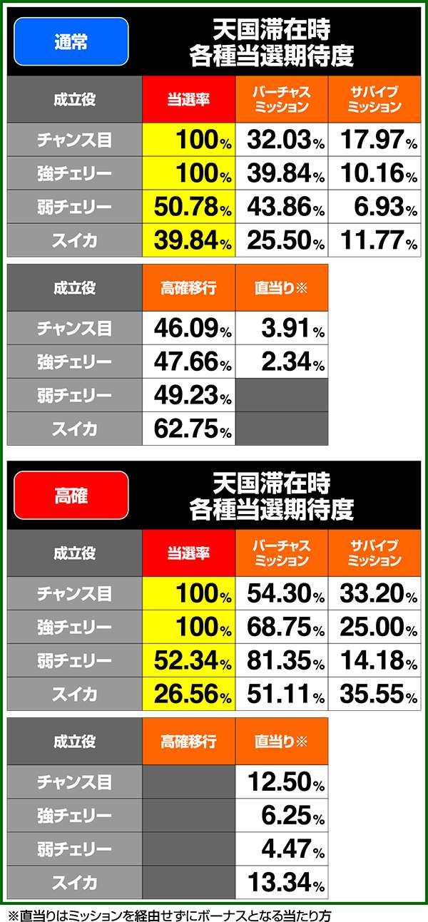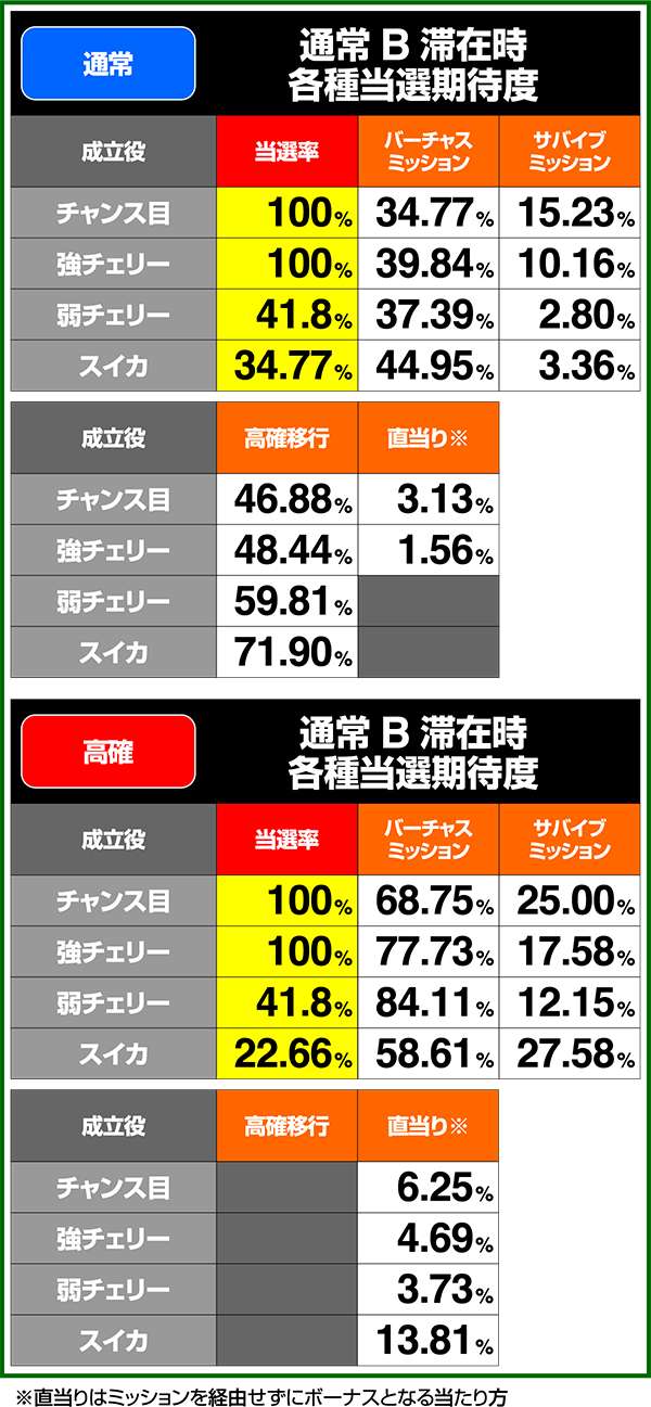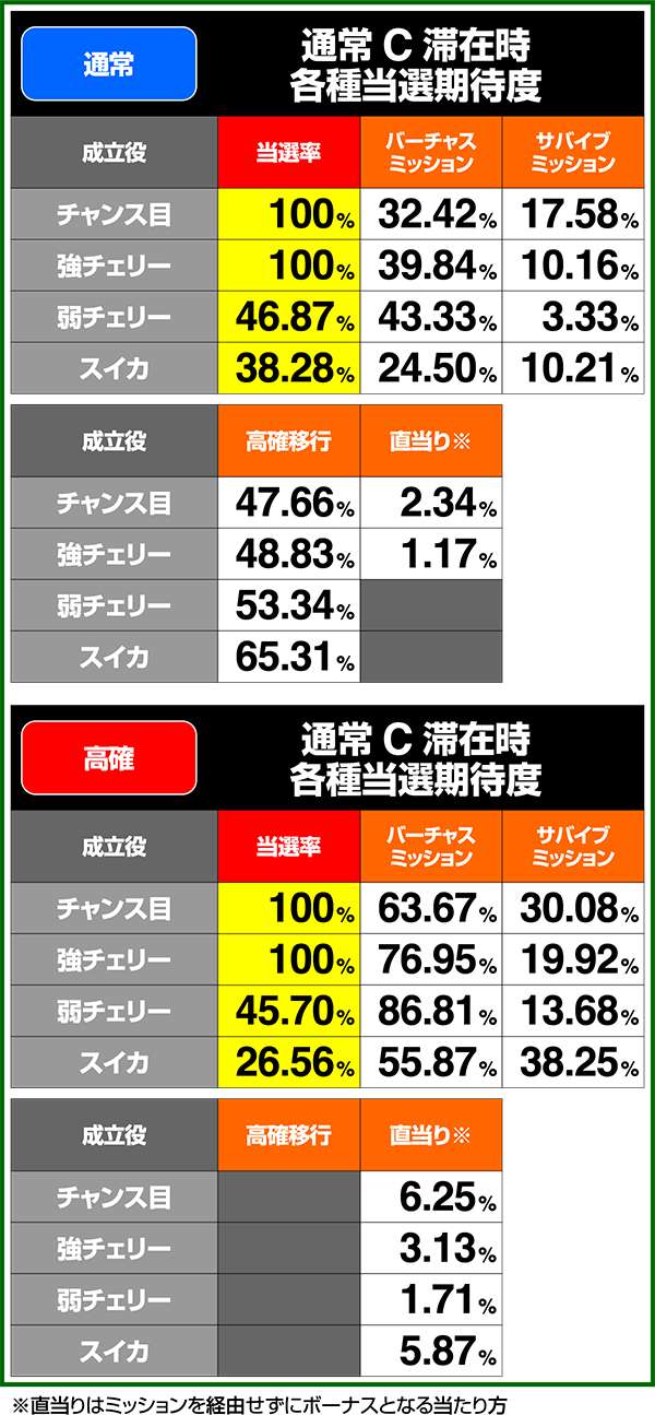 通常時&CB中の小役確率