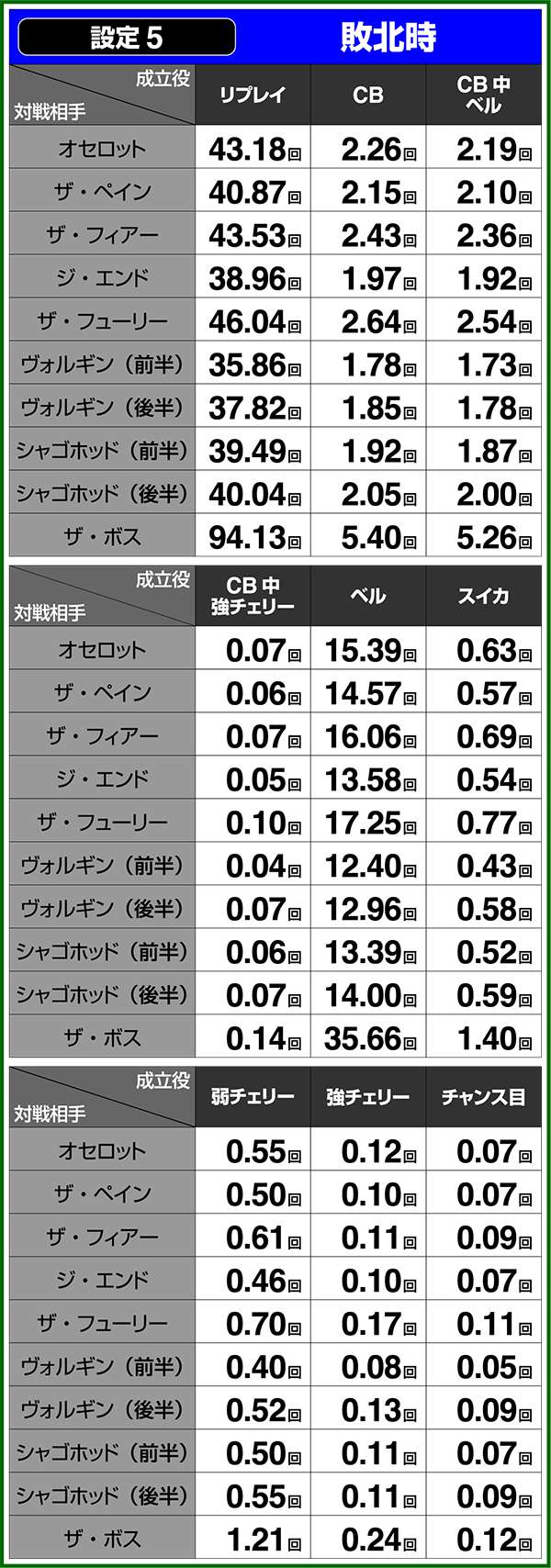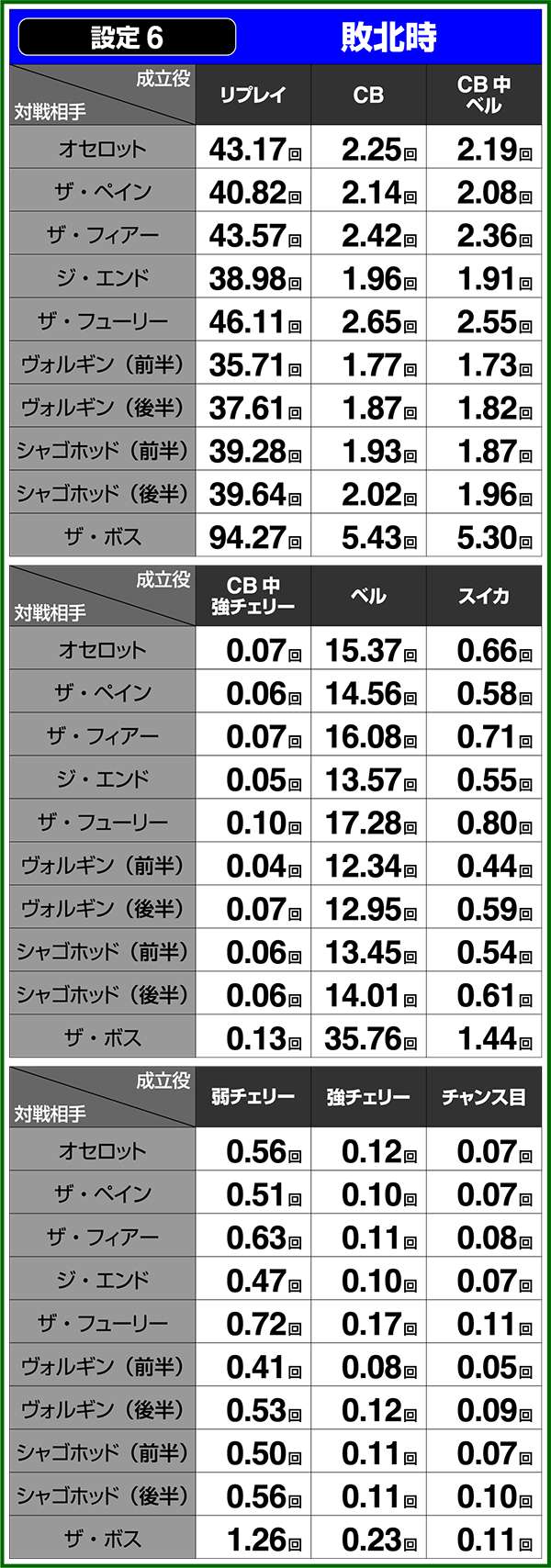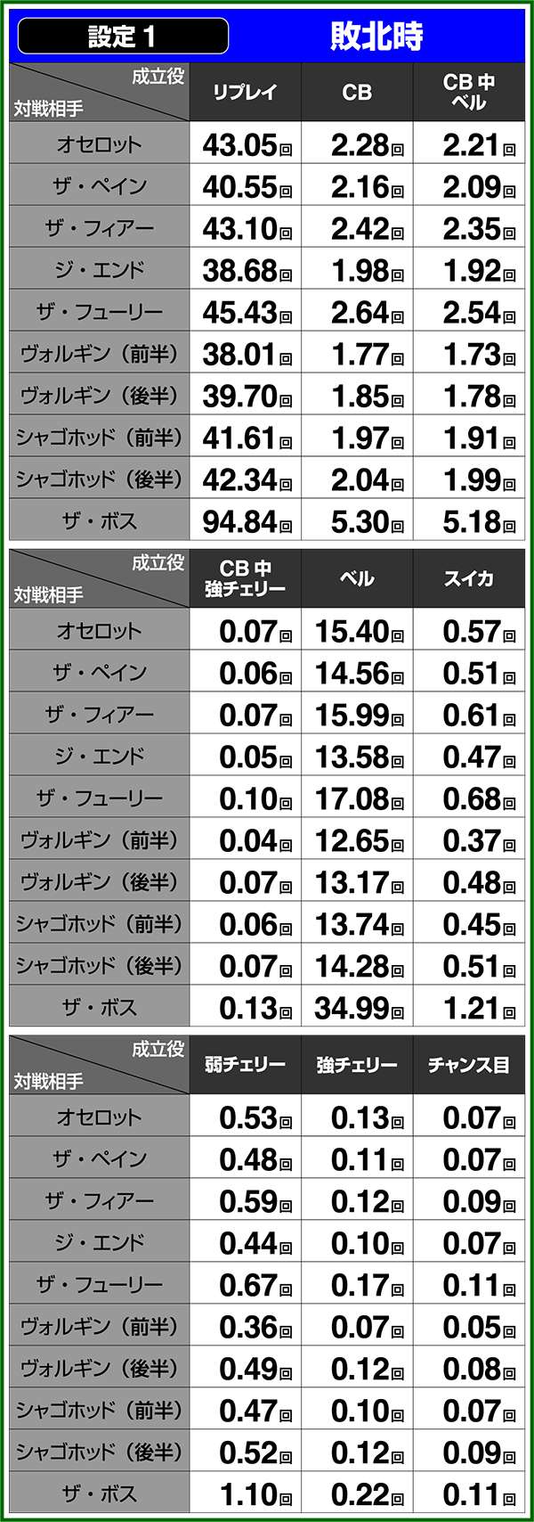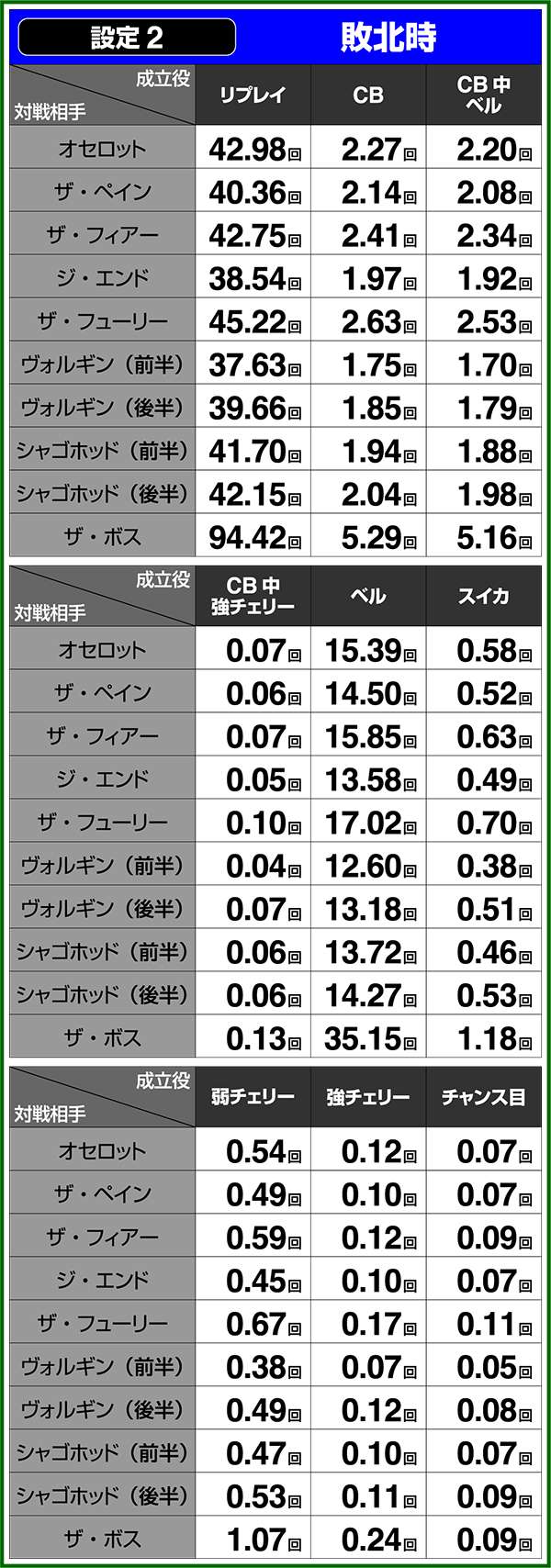 通常時&CB中の小役確率