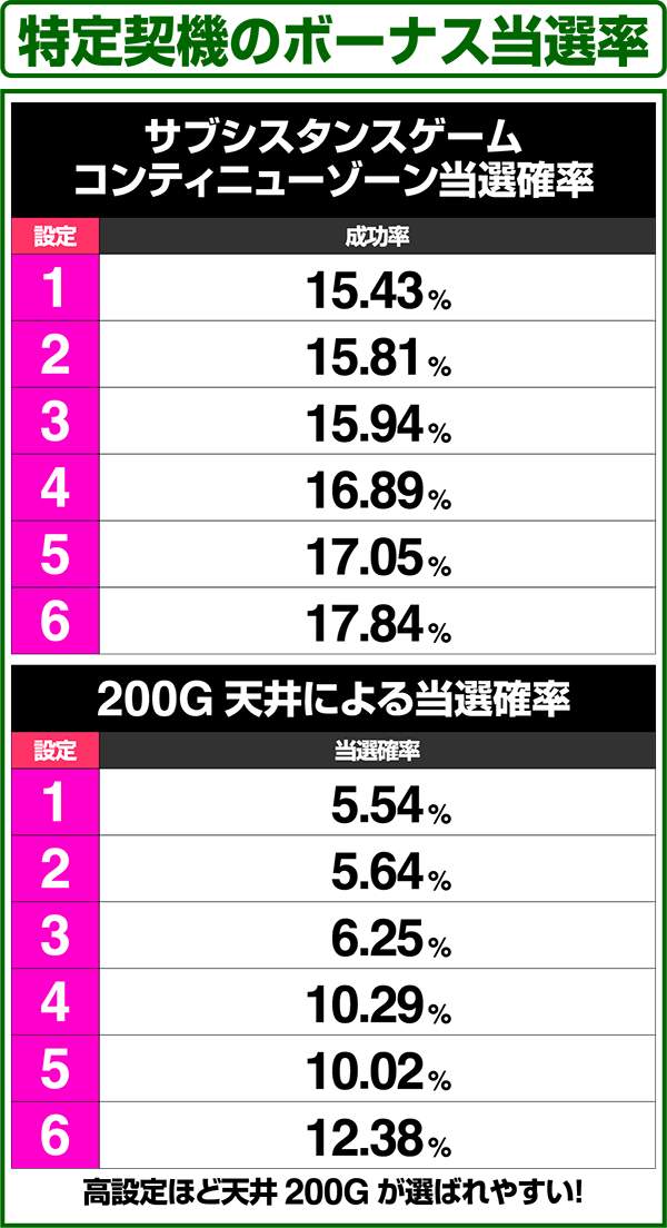 特定契機&200G天井によるボーナス当選率