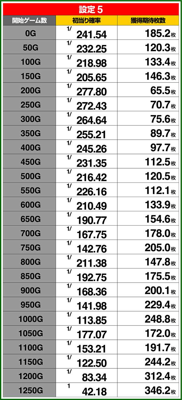 ゲーム数ごとの当選割合