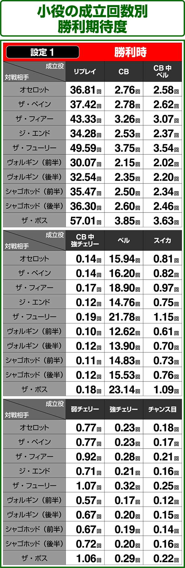 小役の成立回数別勝利期待度