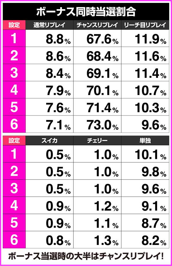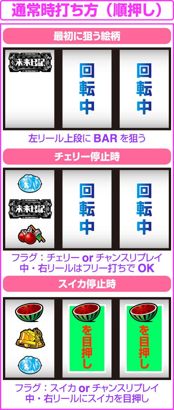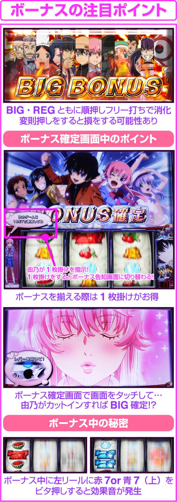 ボーナス中は順押しフリー打ちで消化しないと、小役を取りこぼす可能性あり。