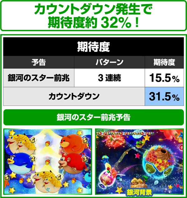 銀河の前兆スター予告は3連続すればチャンスとなり、銀河背景に到達すれば大当り濃厚!?